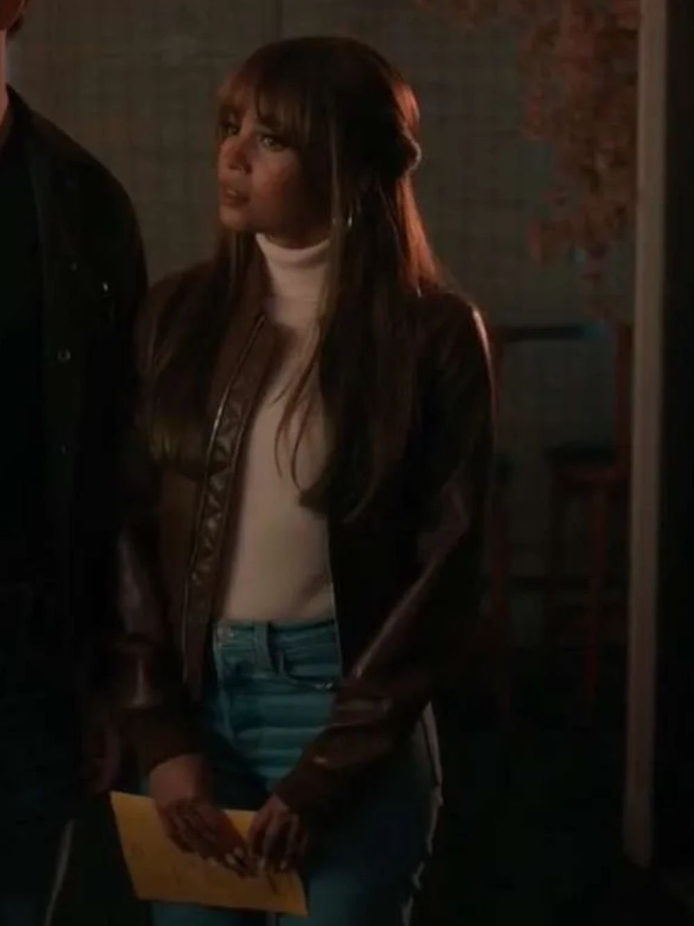 Vanessa Morgan Wild Cards Wild Cards 2024 TV Series Max Mitchell Brown Crop Bomber Jacket