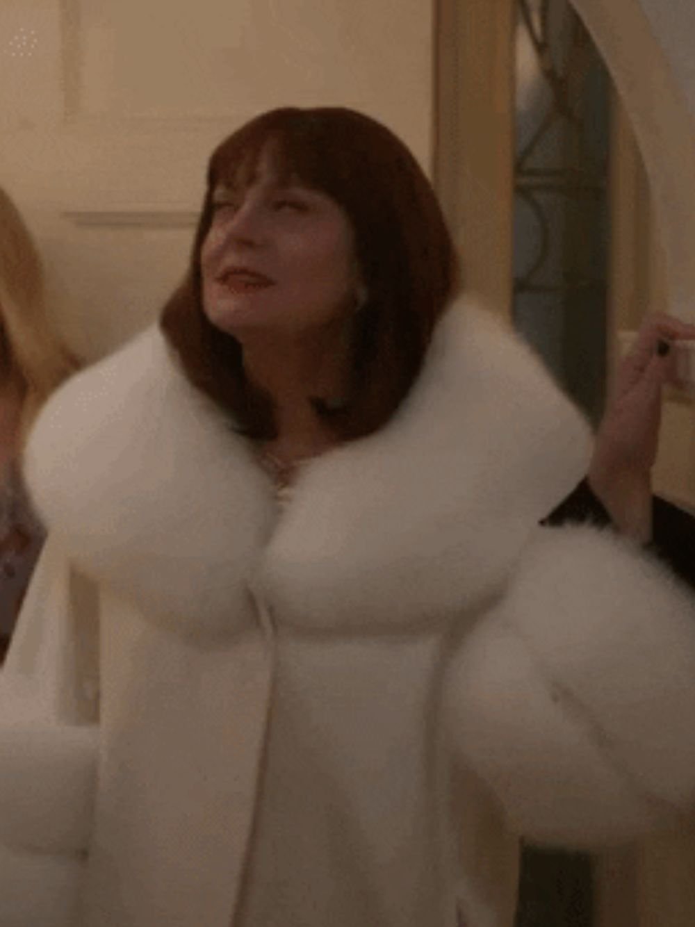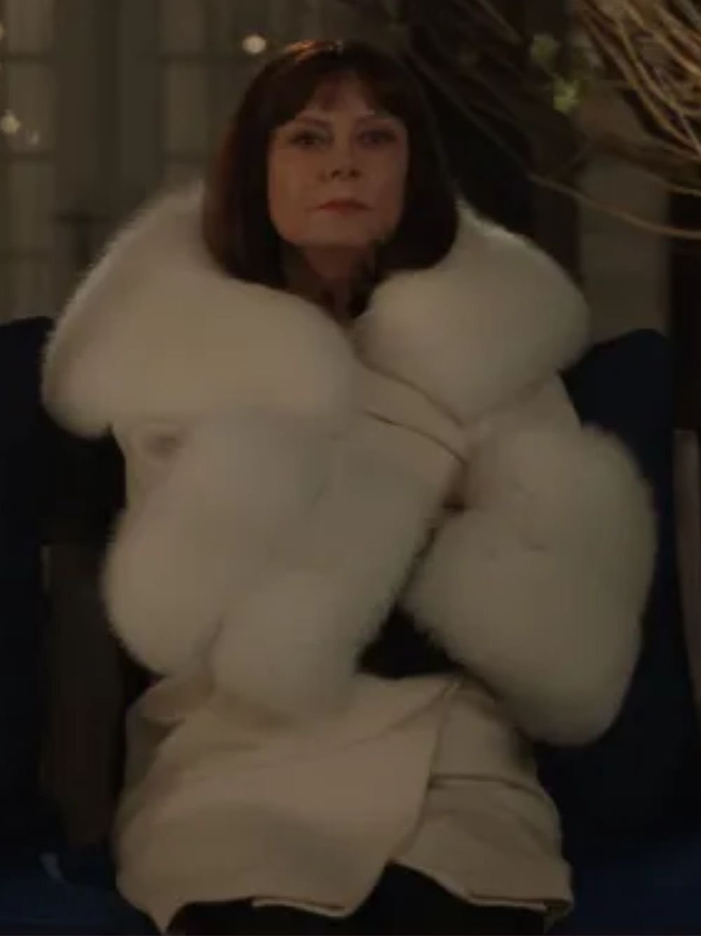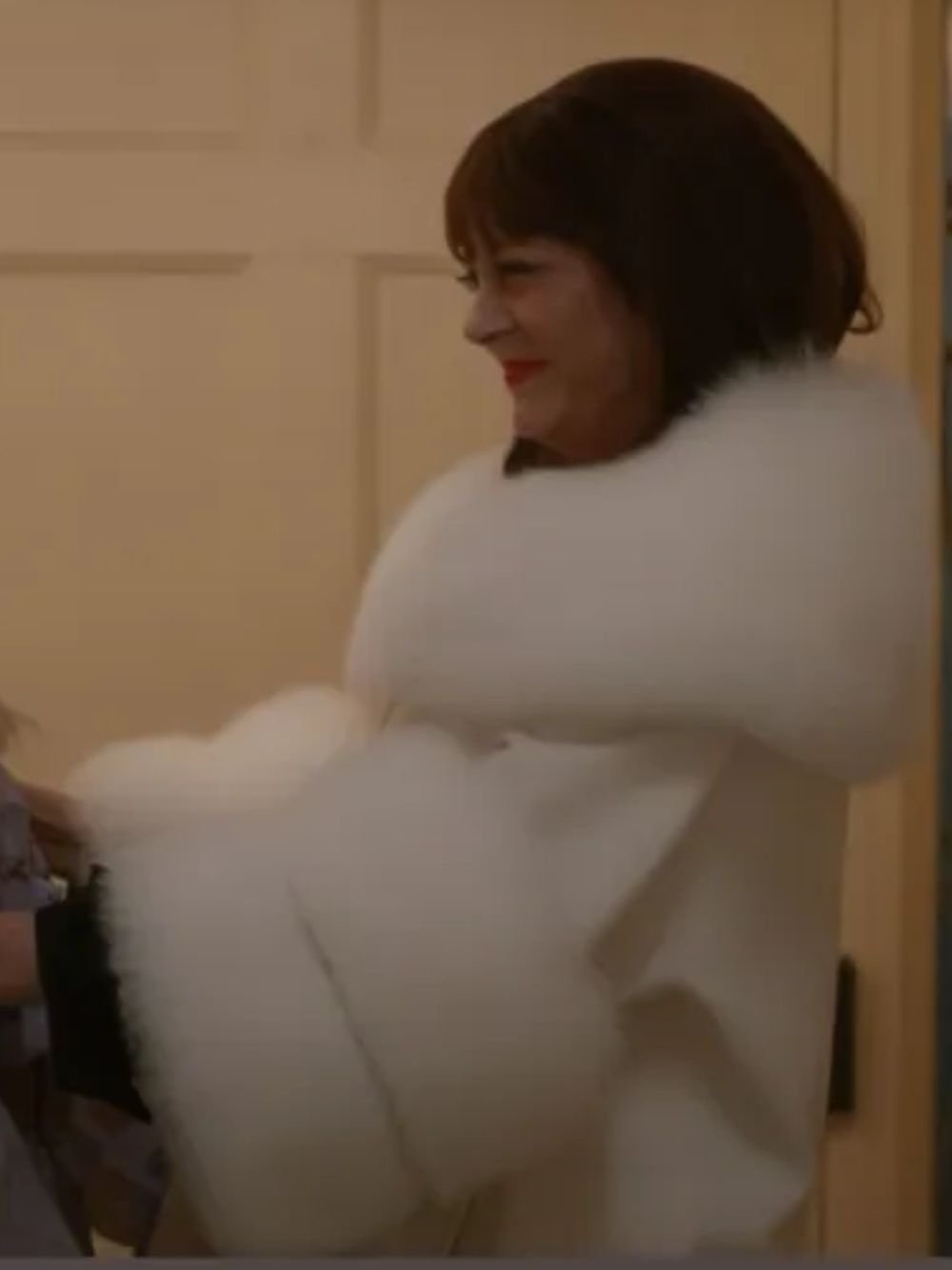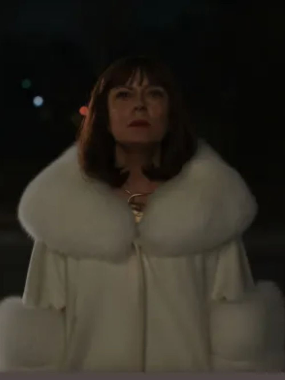 Monica Maybe I Do 2023 Movie Susan Sarandon White Fur Woolen Coat