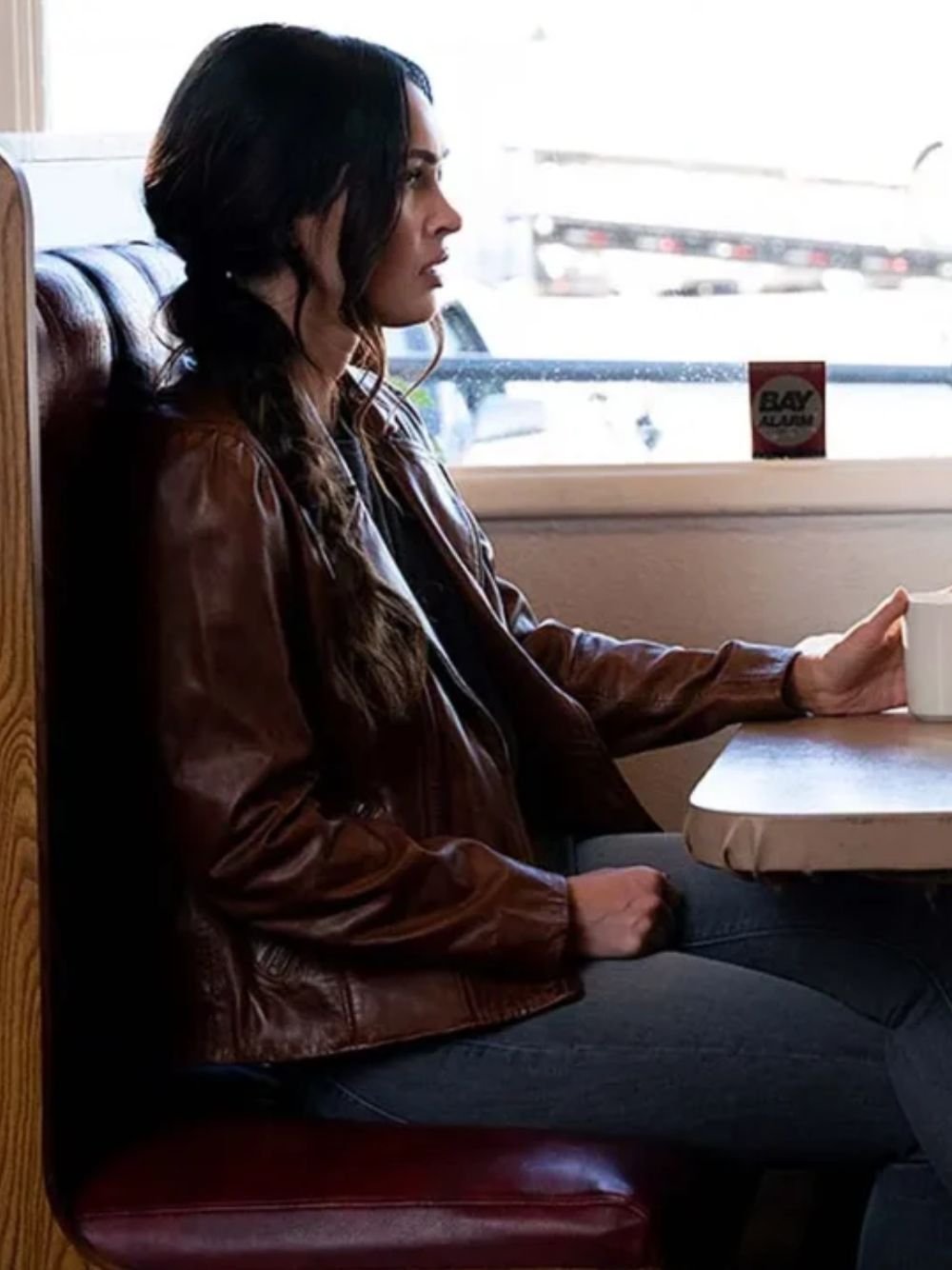 Megan Fox 2021 Midnight in the Switchgrass Rebecca Lombardi Brown Leather Jacket