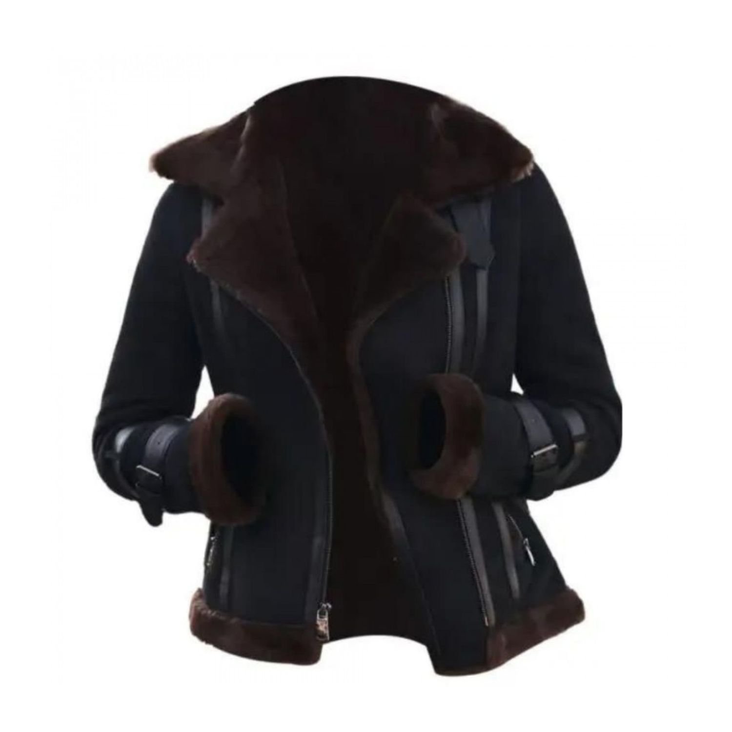- Collar: Notch Lapel Style with Shearling Fur