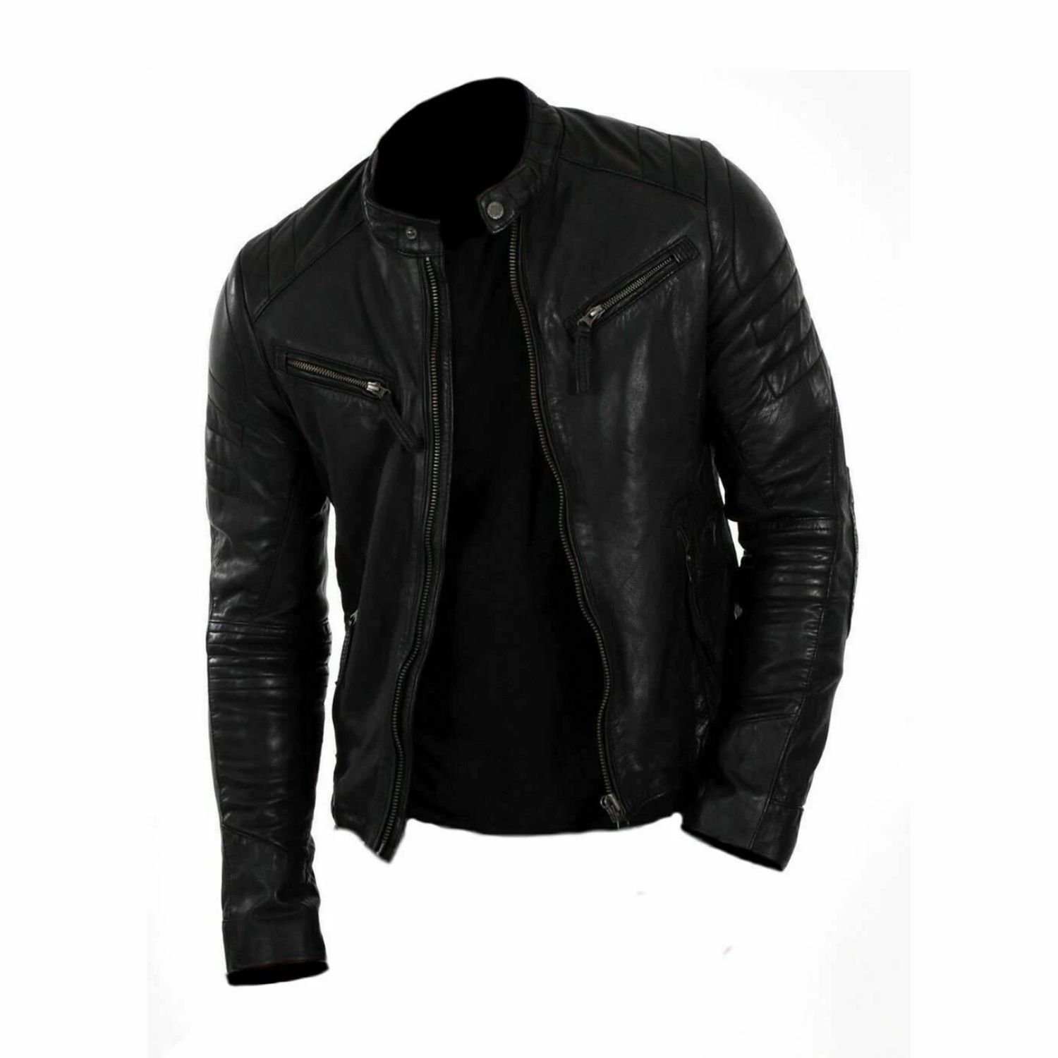 Fashion is part of the daily part and its changes all the time, with its event. An addition in fashion is jackets that give a very adorable look. The material used to fabricate Men’s Lambskin Genuine Leather Biker Jacket is genuine lambskin. Lambskin jackets are very common among people because this stuff is long-lasting. The internal stuff of this jacket is viscose lining. The front of this jacket is in the zipper style. The collar is in a snap style that gives a very decent and elegant look. Its color is very unique that is black. This color is very graceful. The jacket has long sleeves with zipping and snaps button cuffs. it has a dual chest zip pocket and dual side zip pocket at the bottom. It is available at a very reasonable price that can be affordable for everyone from their pocket money. It gives a very alluring and nice look. Get this jacket fast.
