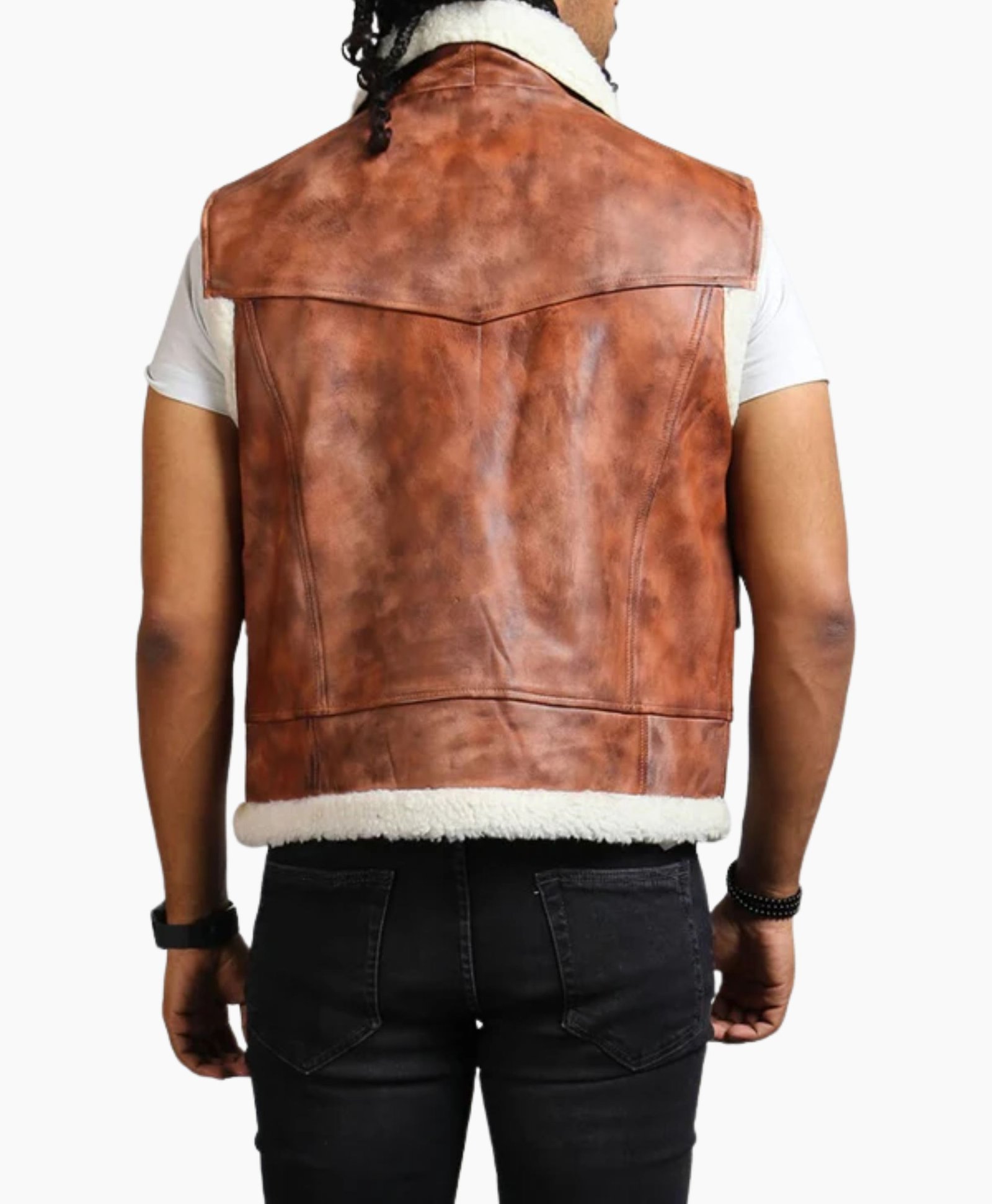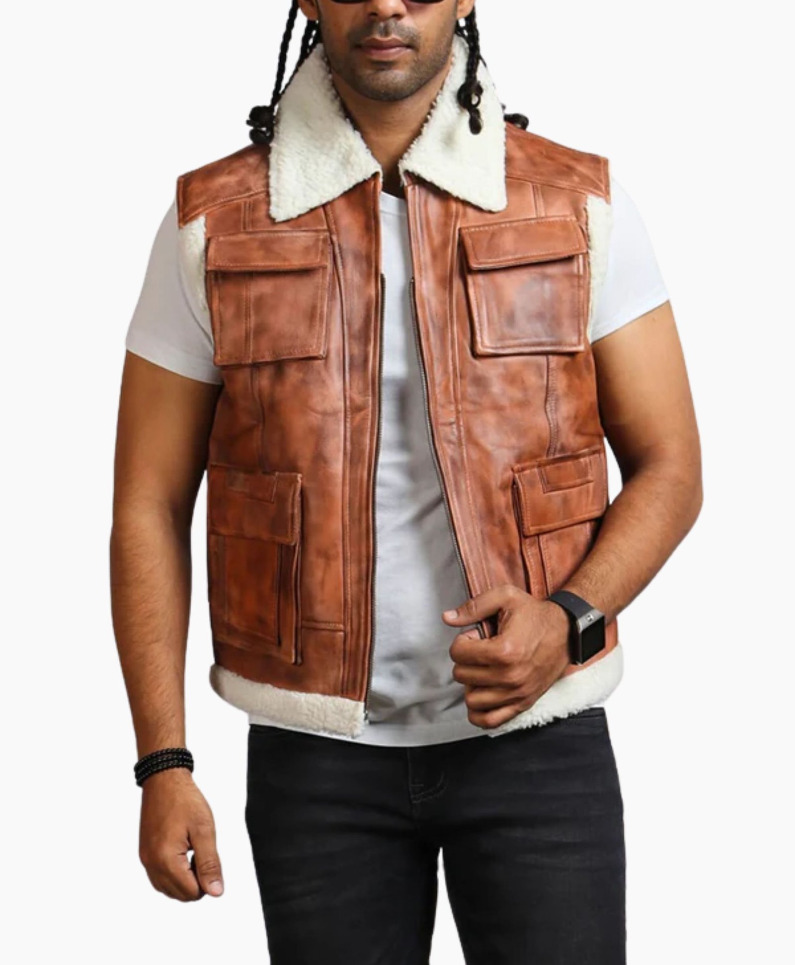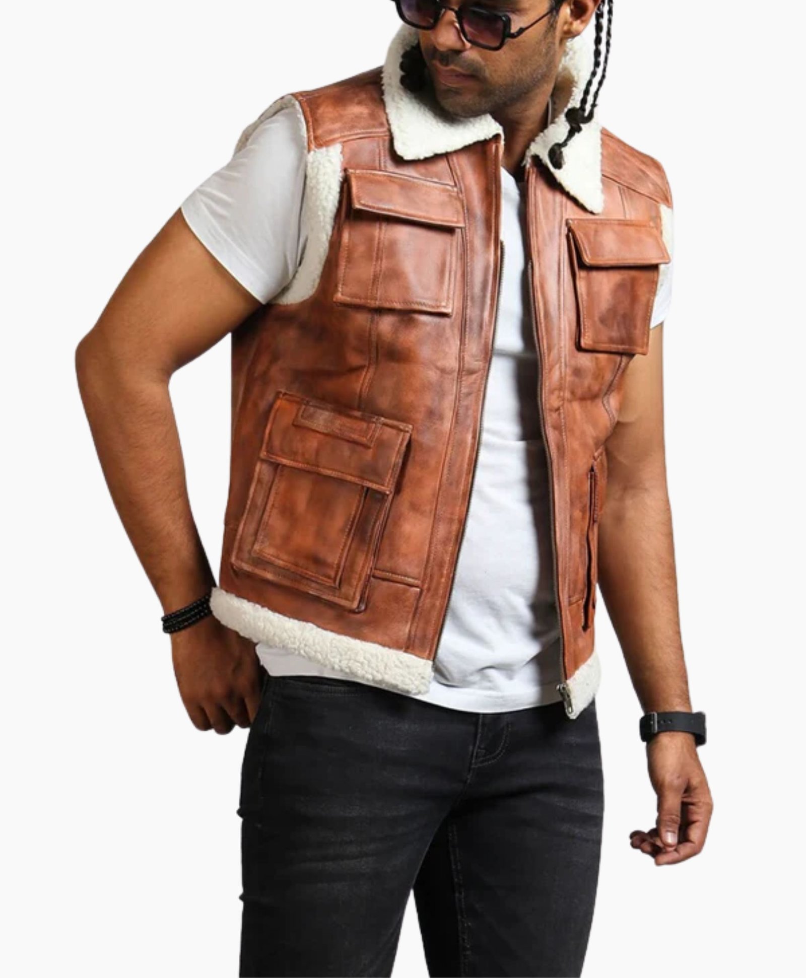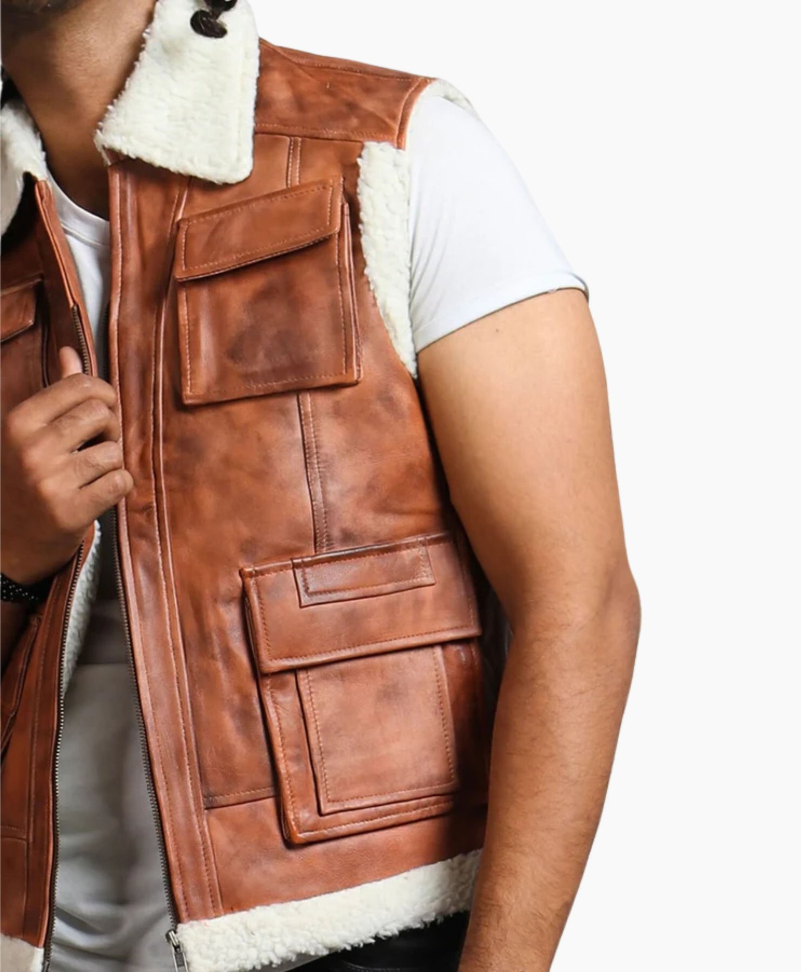 Step up your outerwear game with the Men’s Brown Vintage Flap Pocket Faux Fur Leather Vest, a perfect combination of rugged design, warmth, and sophistication. Expertly crafted from real leather, this vest offers a classic vintage appeal with a rich brown finish that never goes out of style.