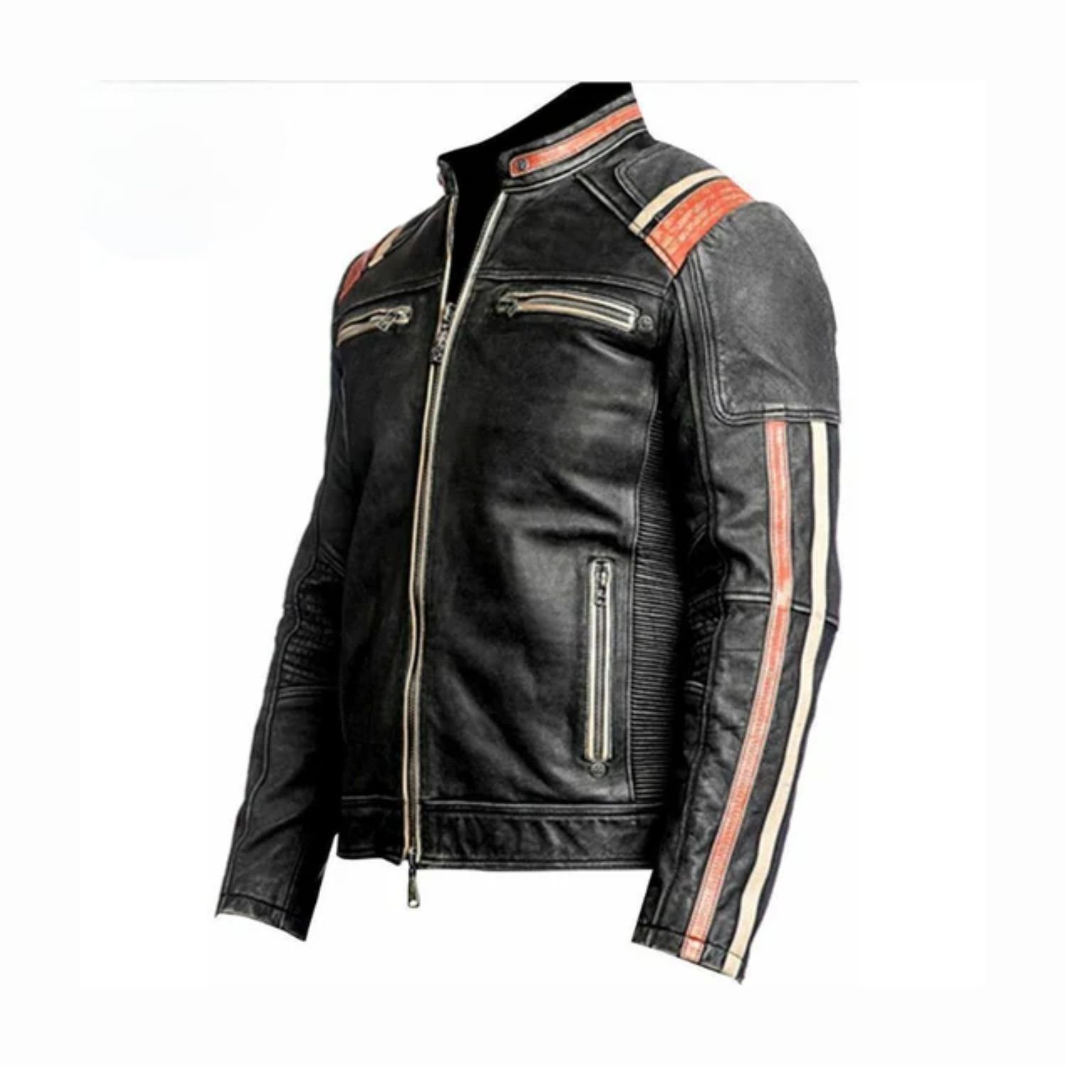 What is the color of this Men Cafe Racer Stripe Jacket?