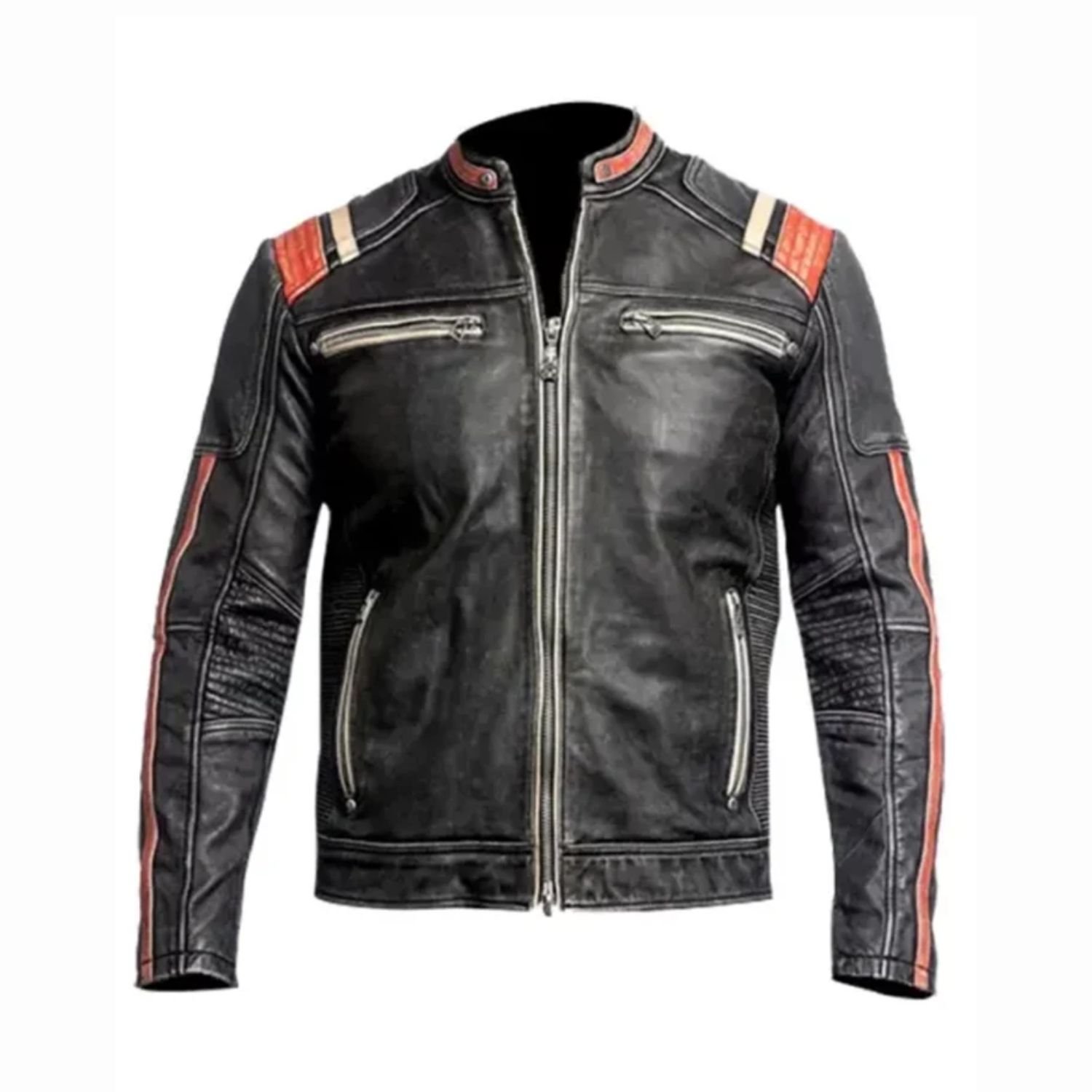 A cafe racer jacket is a kind of motorcycle jacket. It has distinguished by a round collar, a straight zipper, and a simplistic design. Its popular among racers and bikers for travel. It has frequently used as a regular jacket for informal and stylish purposes.