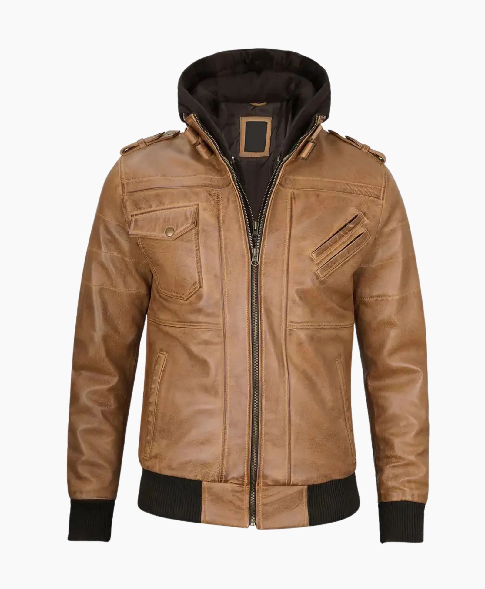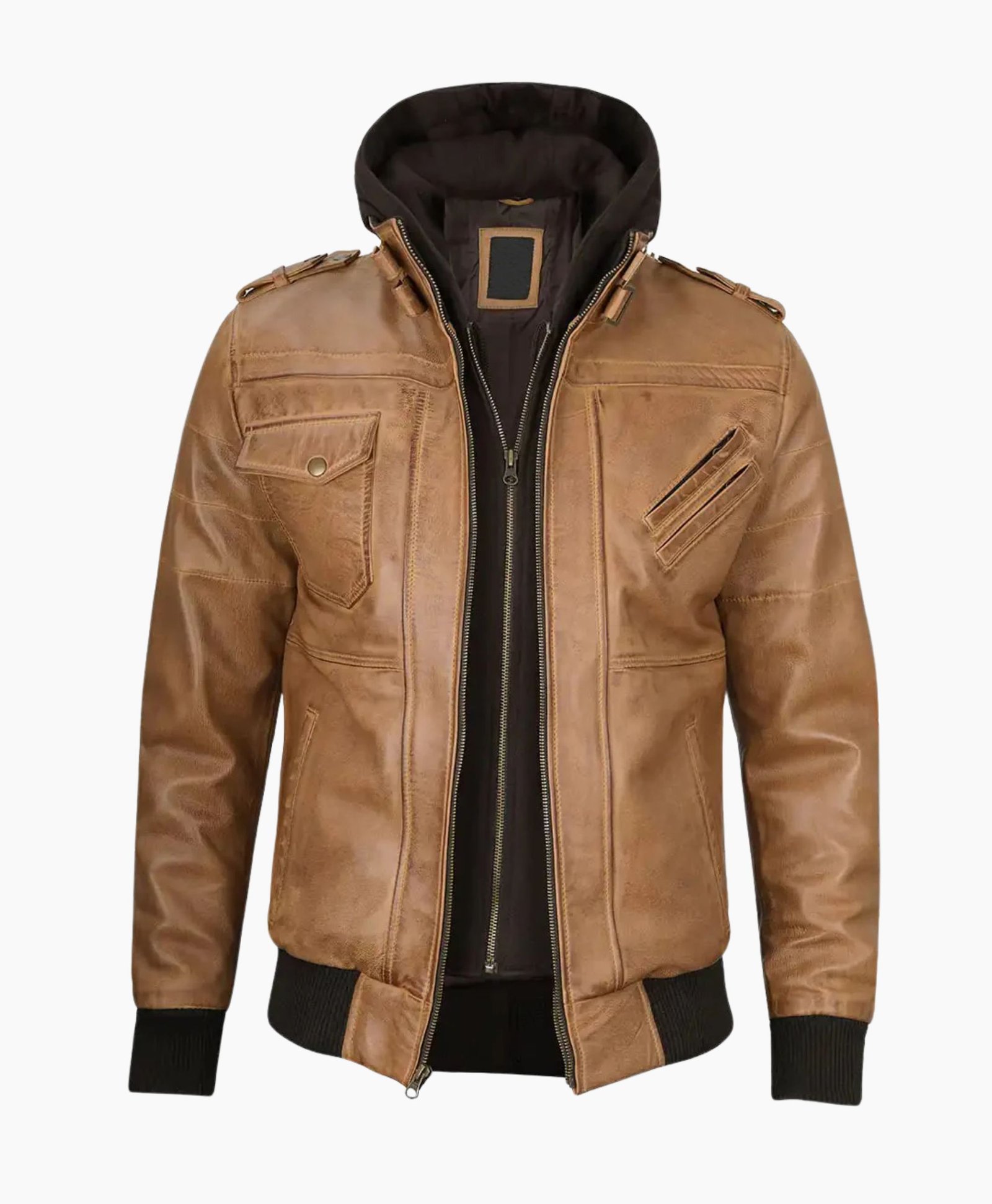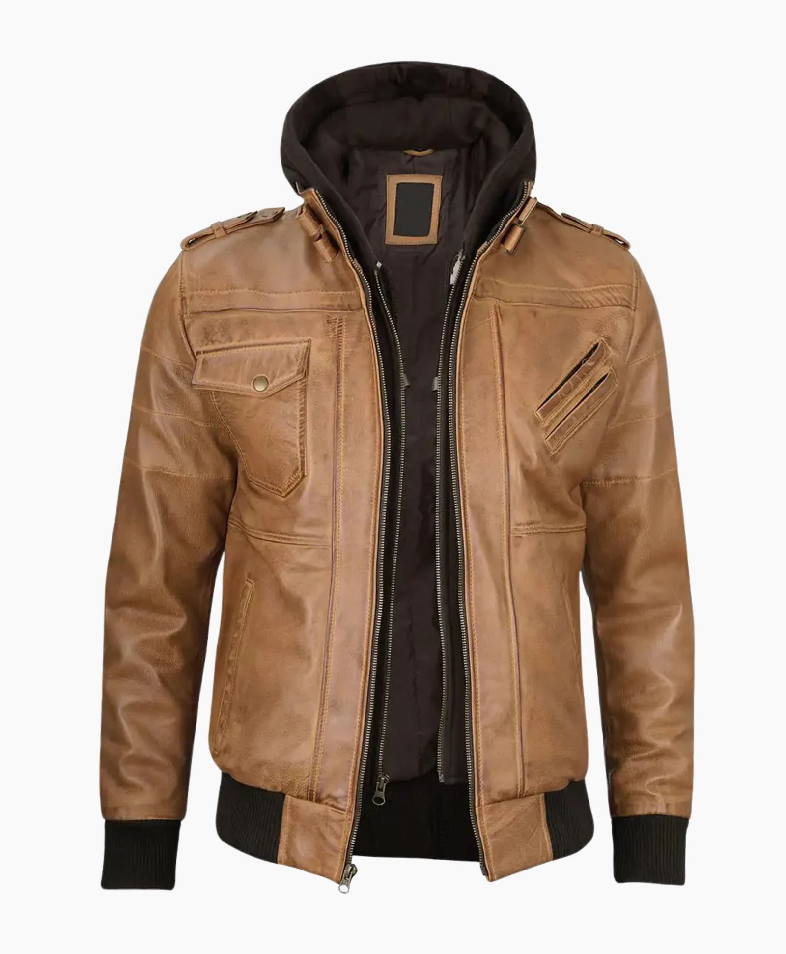 Featuring a detachable hood with soft polyester lining and adjustable drawstrings, this jacket by Movie Jackets Hub gives you versatility and comfort in any season. The smooth YKK zip closure adds a sleek touch, while three exterior pockets, two inner pockets, and an extra mobile pocket provide ample storage for your essentials. Designed in a classic bomber style, the warm camel brown color makes a bold yet timeless statement.