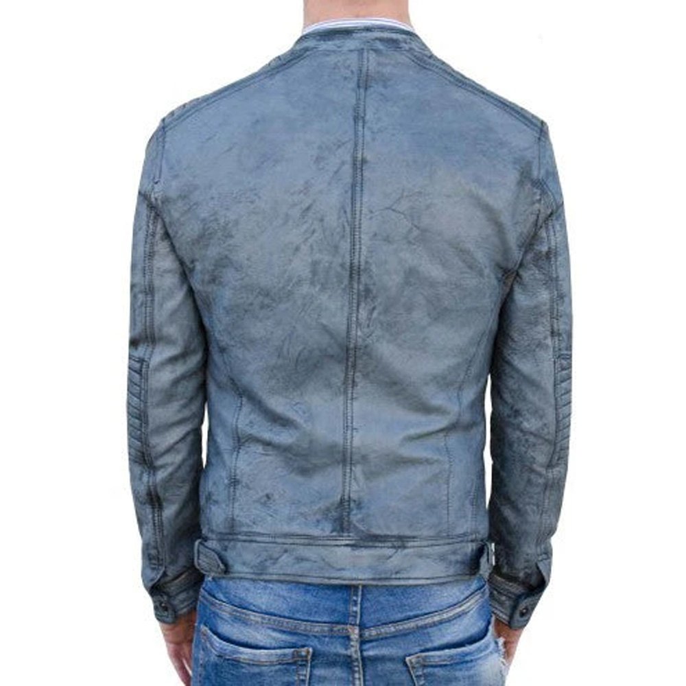 Mens Decant Biker Jacket in Leather with Padded