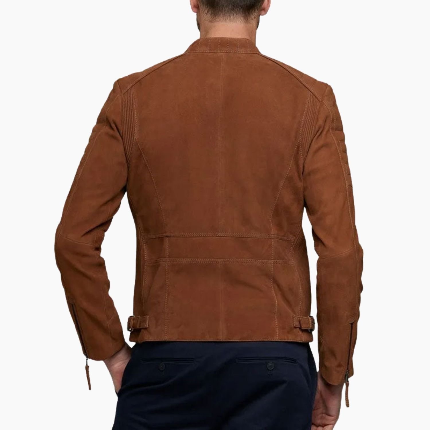 A hallmark of this biker jacket is its rugged yet refined hardware. It features high-quality YKK zippers with a stunning brass finish, providing a vintage-inspired contrast against the textured suede. These premium zippers are known for their reliability and smooth operation, ensuring that the front closure and pockets remain secure through years of daily use. The biker-inspired design is rounded out with classic moto accents, including zippered cuffs and a structured collar that adds a tough, edgy flair to the overall aesthetic. At Movie Jackets Hub, we bring this masterpiece of men’s fashion directly to you with worldwide free shipping and fast delivery across the USA, ensuring you can take your style to the next level without delay.