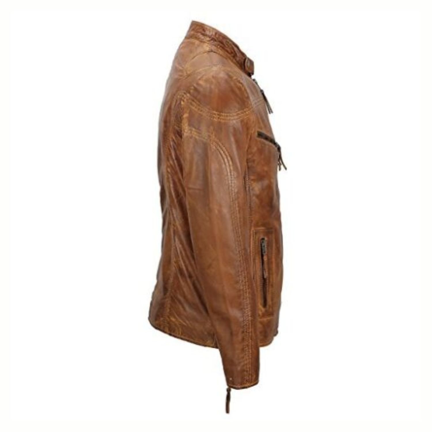Mens Fitted Tan Brown Biker Jacket