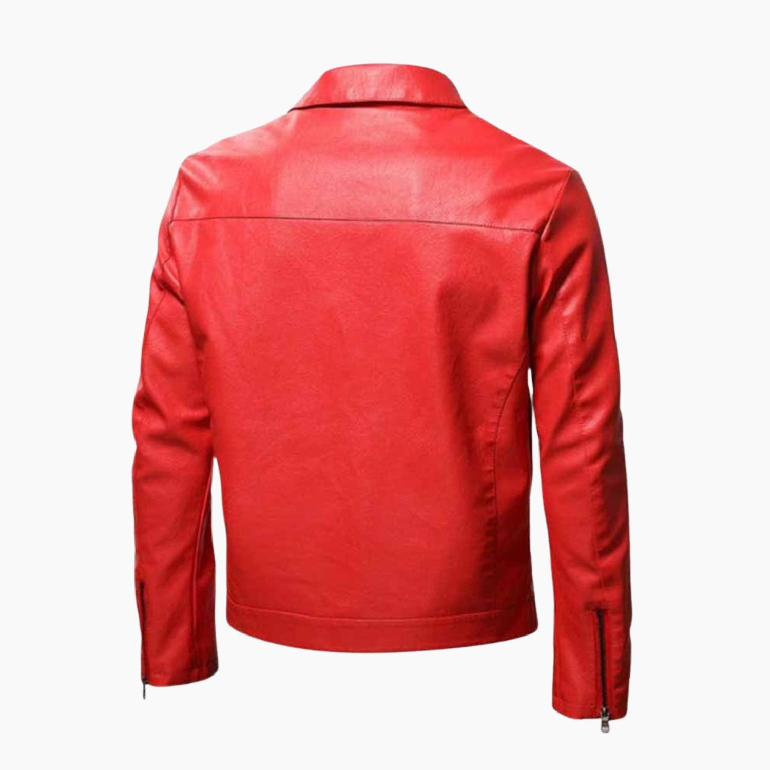Men’s Lapel Collar Zip-Up Leather Jacket