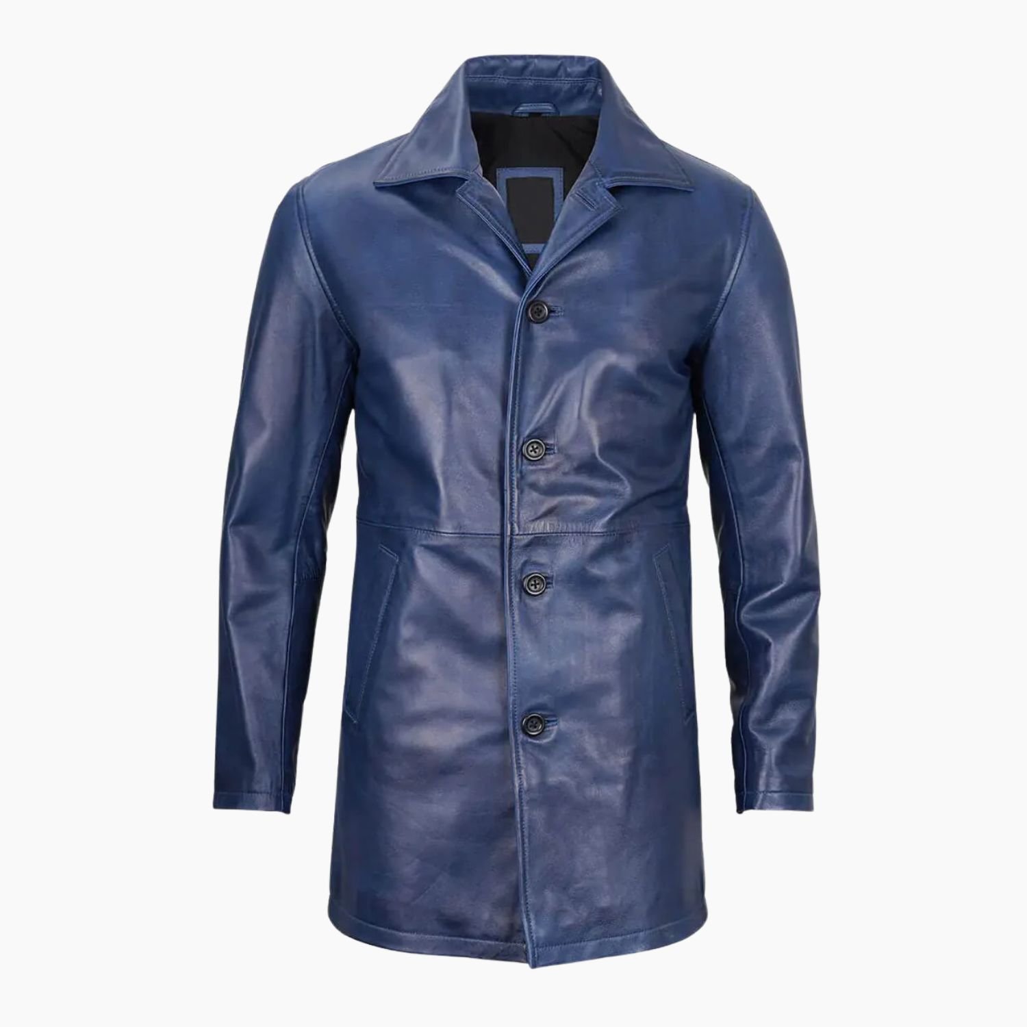 Refined, durable, and effortlessly stylish the Men’s Blue Leather Car Coat is the perfect blend of luxury craftsmanship and timeless design. Expertly made from genuine blue lambskin leather, this coat delivers unmatched softness, flexibility, and durability, ideal for men who appreciate sophistication and quality.