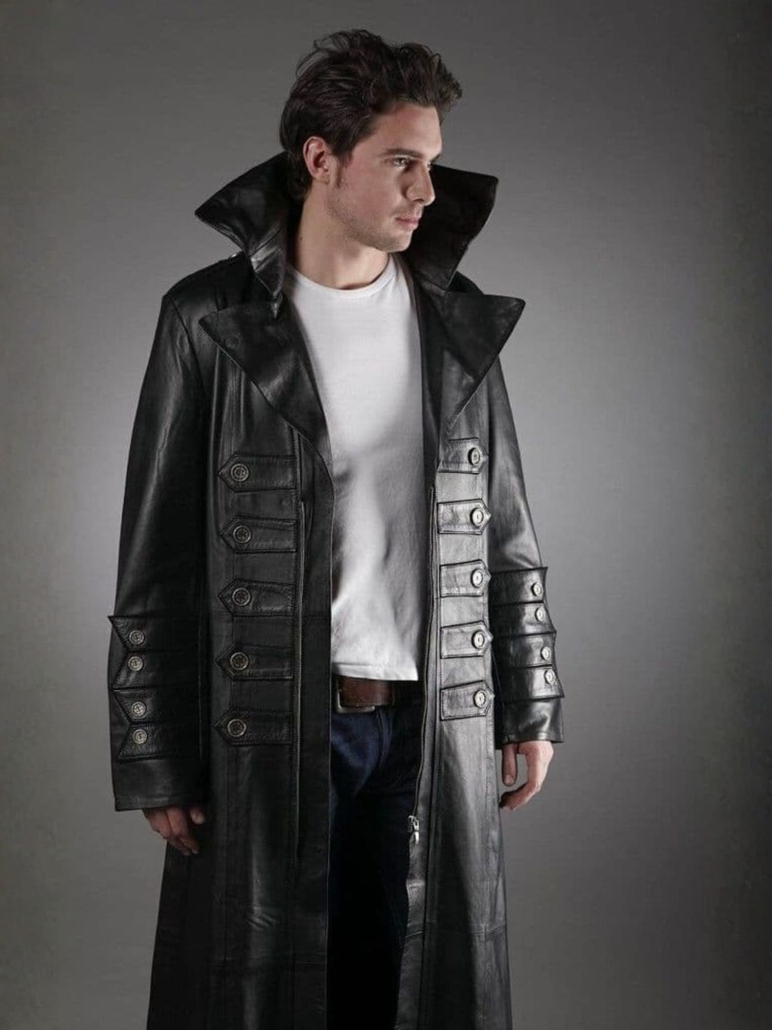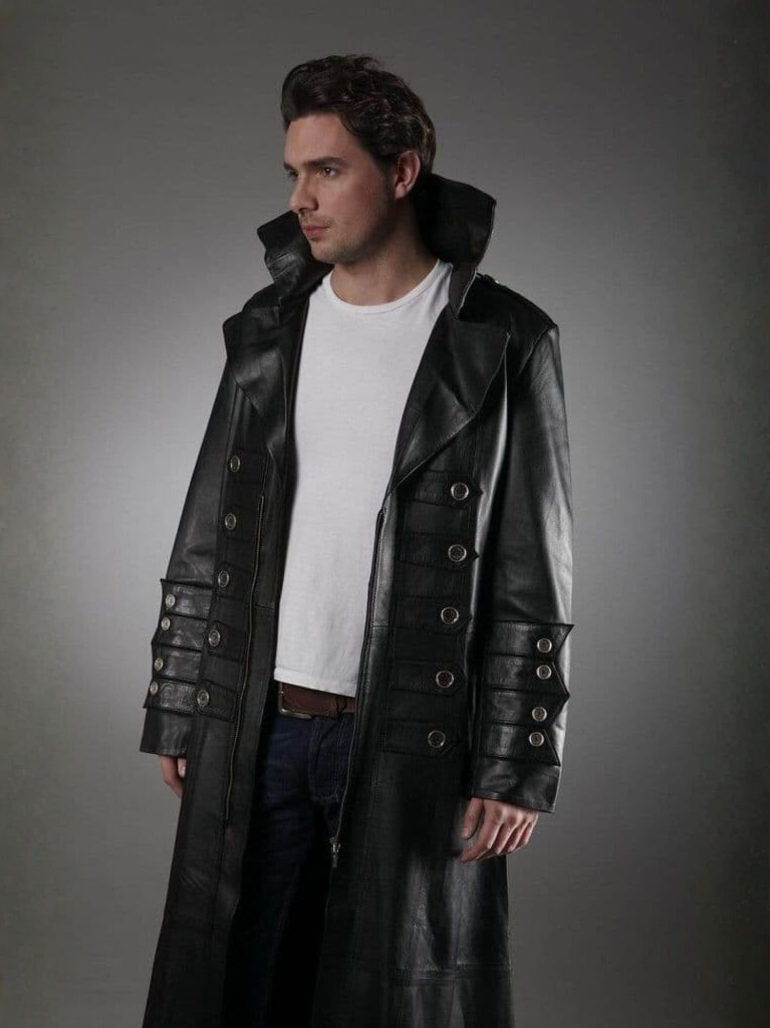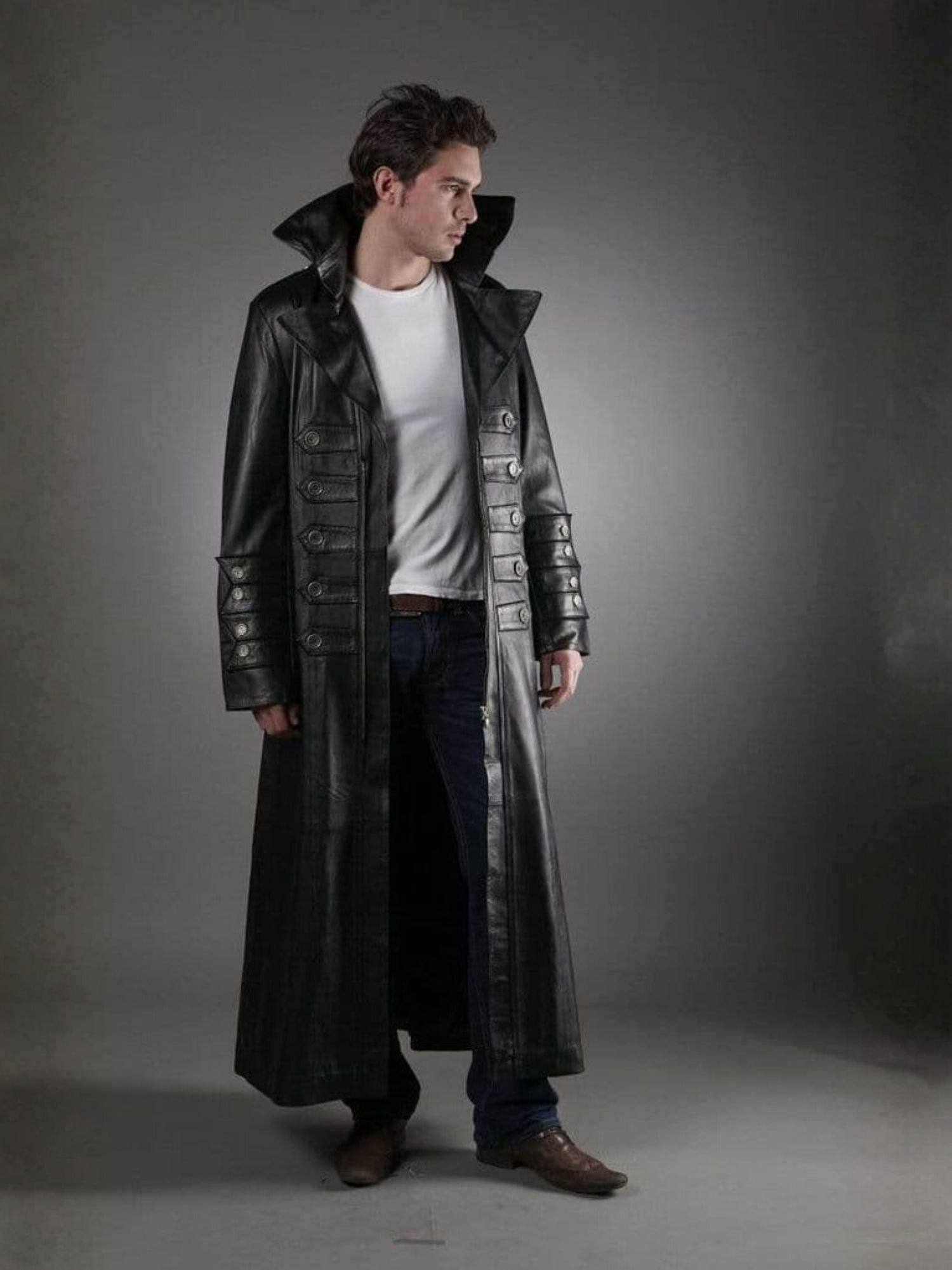 Command attention with the Men’s Military Black Leather Trench Coat by Movie Jackets Hub, a bold fusion of military precision and Victorian-inspired elegance. Crafted from 100% genuine lambskin leather, this trench coat delivers unmatched softness, durability, and timeless sophistication perfect for those who value style with strength.