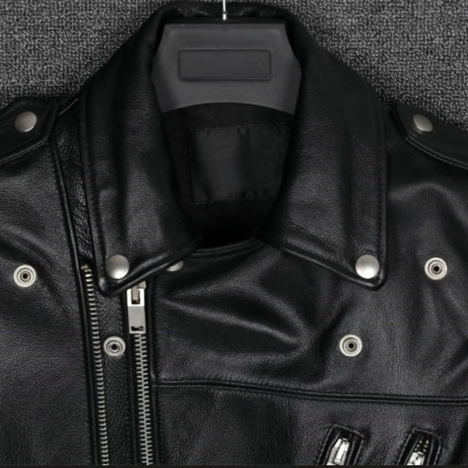 Crafted from high-quality genuine leather, it offers a durable, smooth finish that promises both comfort and long-lasting wear. The standout feature of this jacket is its multi-zipper design, with multiple strategically placed zippers on the chest, sleeves, and sides, adding a tough, street-smart edge to the classic biker silhouette.