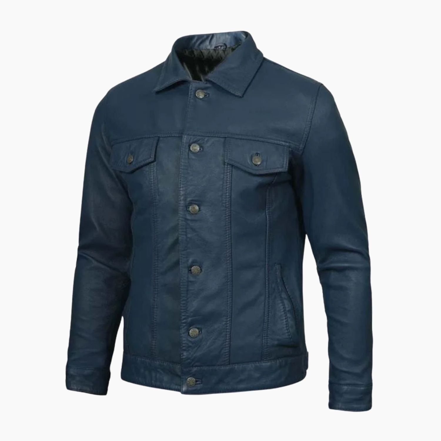 There is a reason the trucker jacket has been a staple from the open plains of Texas to the streets of Brooklyn for over 50 years it just works. But while everyone else is wearing denim or black cowhide, the Navy Blue Washed Trucker offers a sophisticated, rebel-cool alternative.