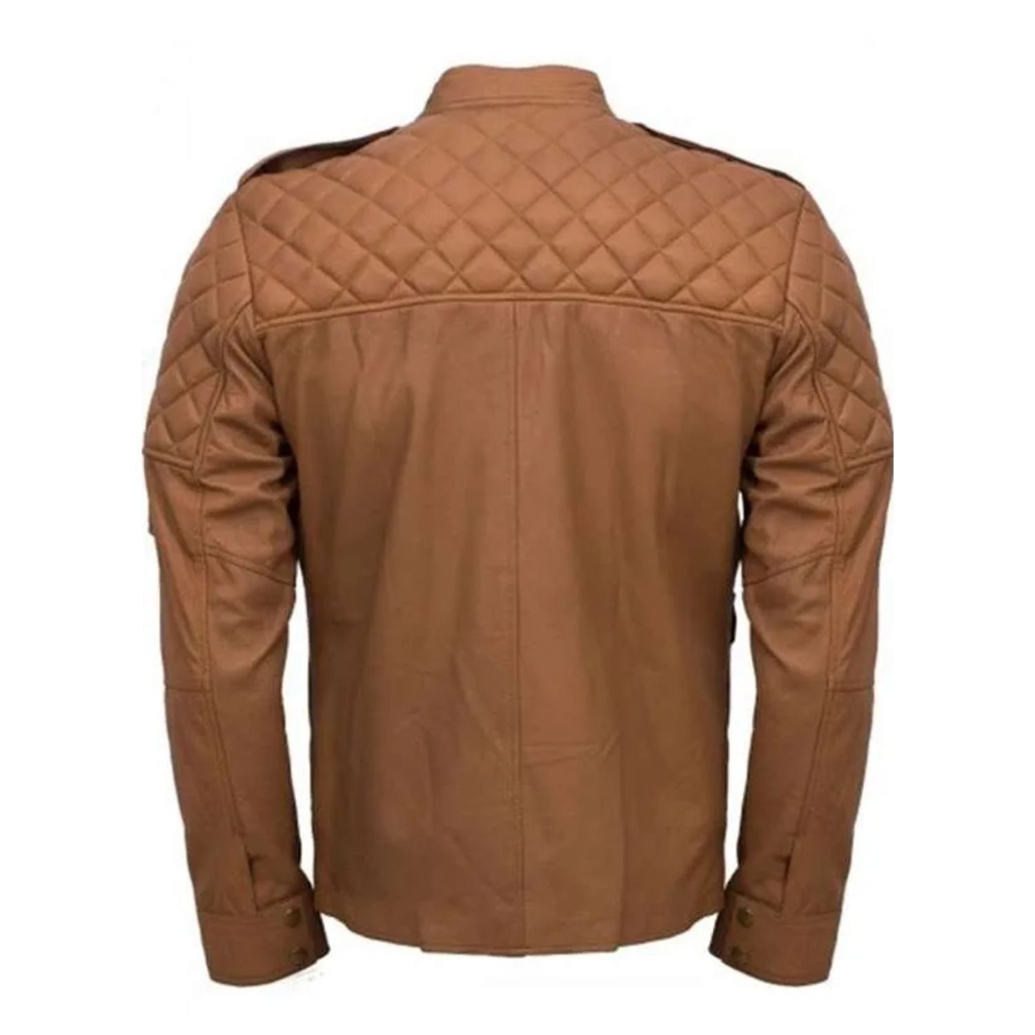 Men’s Quilted Tan Brown Sheepskin Leather Jacket