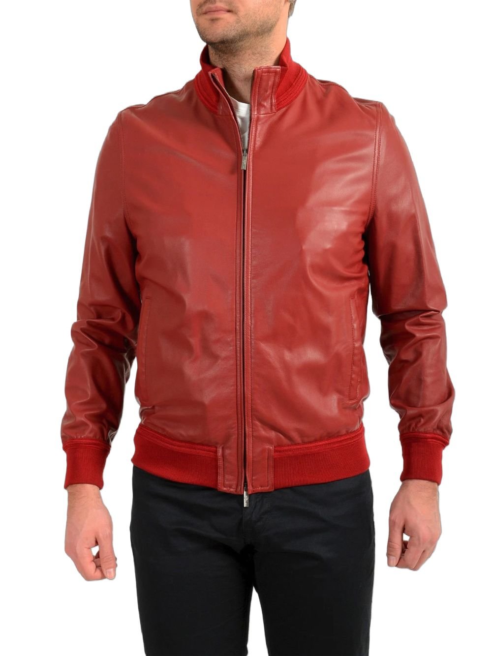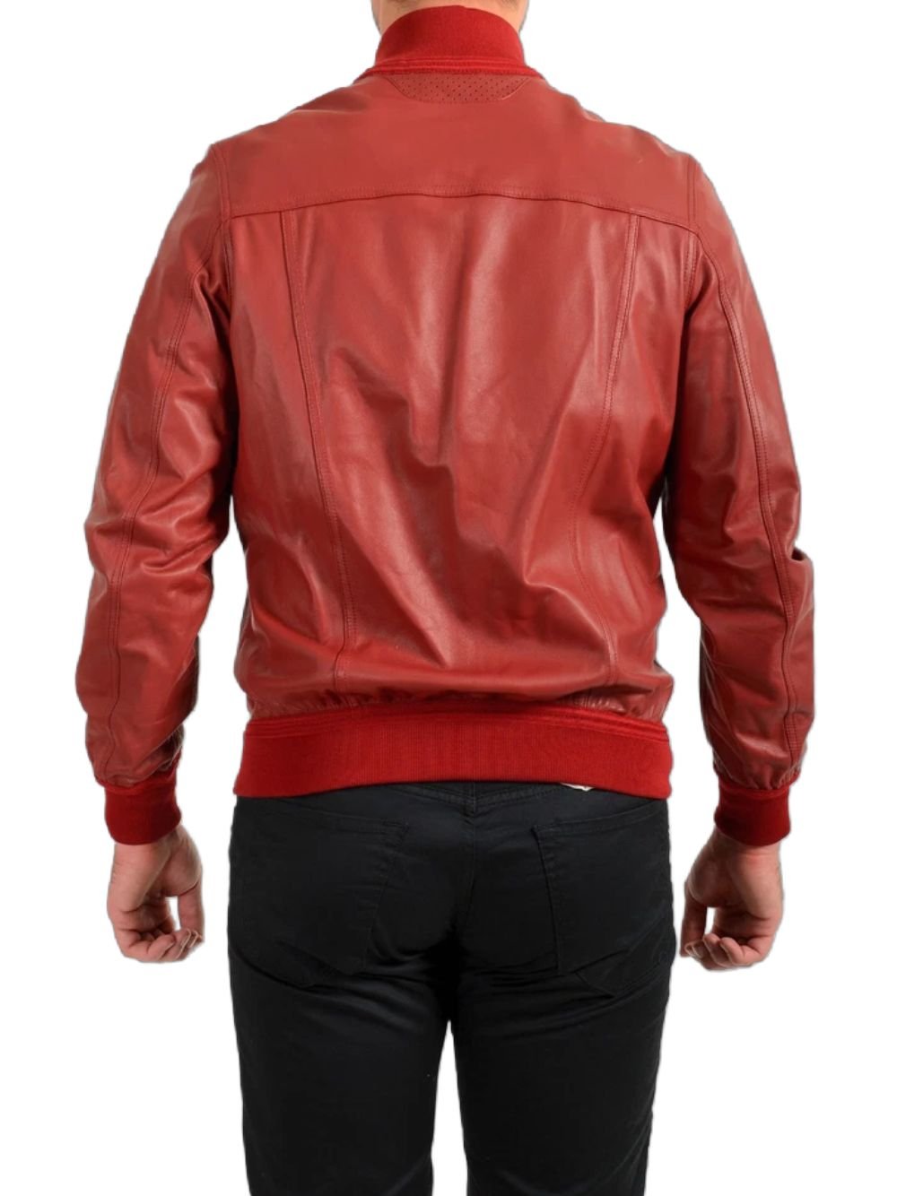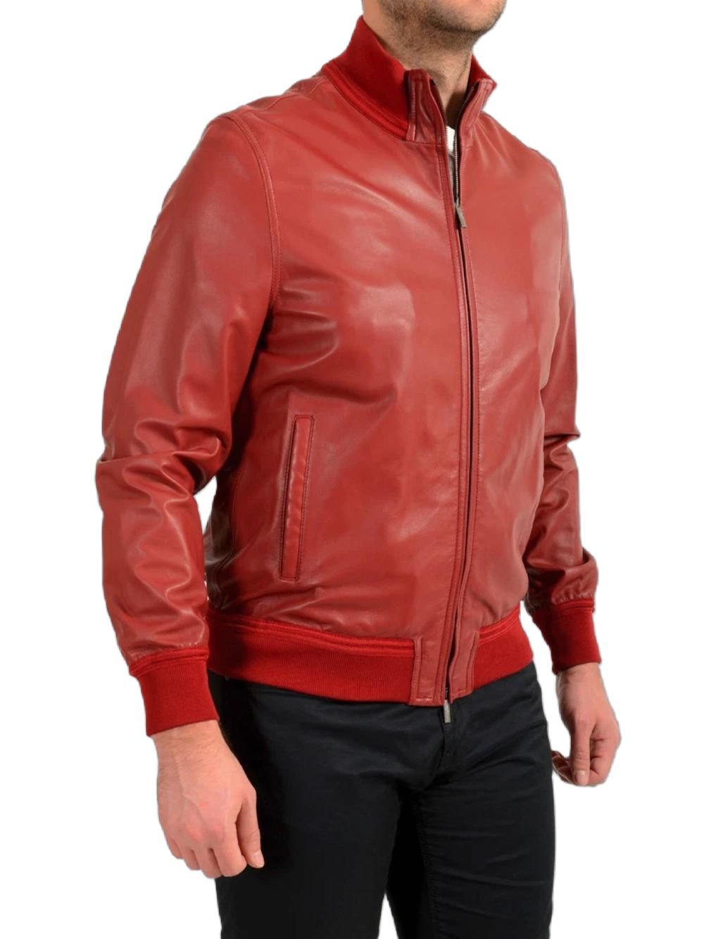 Mens Red Bomber Leather Jacket
