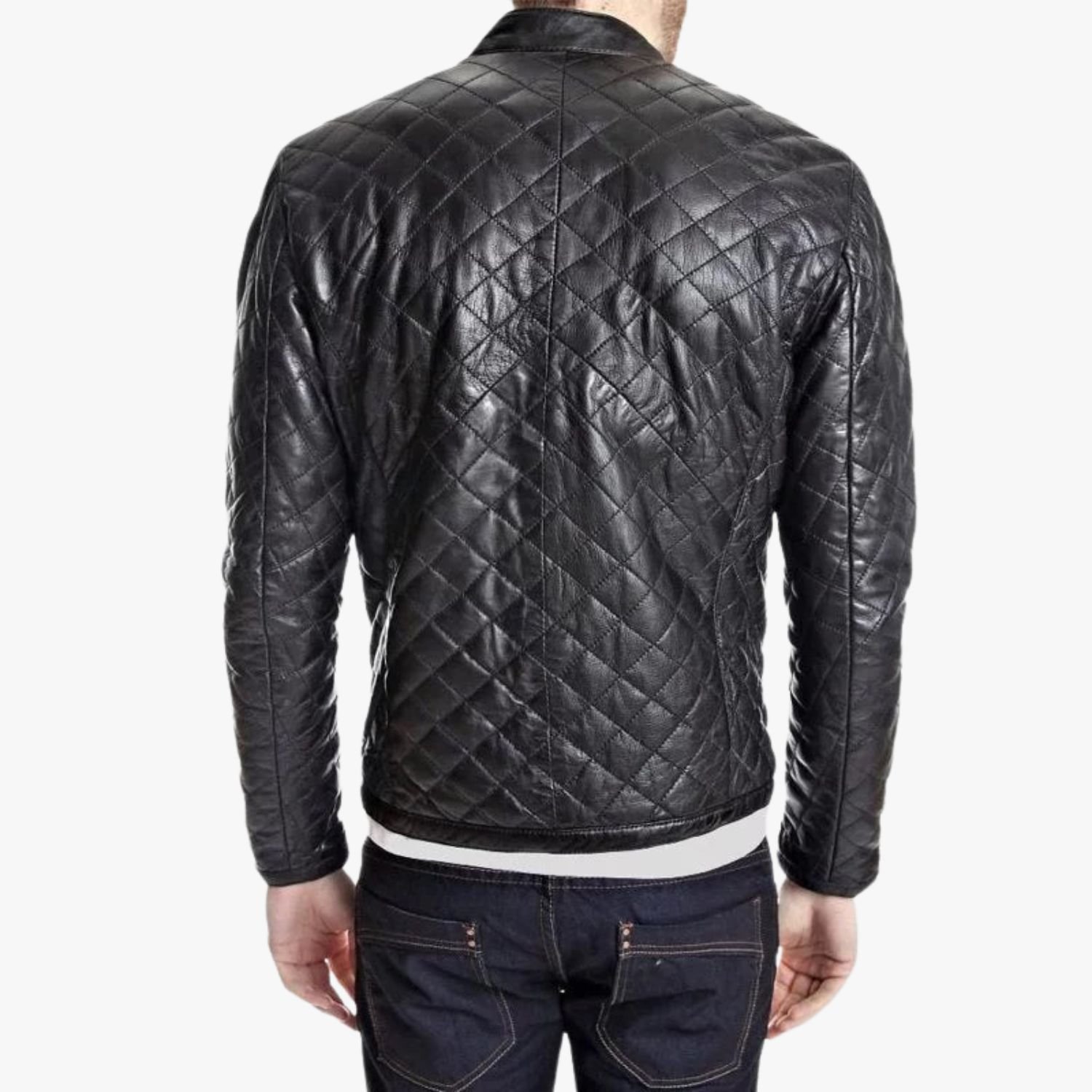 Crafted from 100% Genuine Sheepskin Leather, this jacket by Movie Jackets Hub offers a superior strength-to-weight ratio. Sheepskin is prized for its buttery softness and natural flexibility, ensuring that the diamond-quilted panels move with your body rather than feeling like armor. Inside, a silky viscose lining provides a smooth layer of comfort for all-day wear. Whether you’re heading to a late-night event or navigating a cool morning commute, the Shadow Frame provides a versatile, obsidian-black finish that pairs seamlessly with any wardrobe.