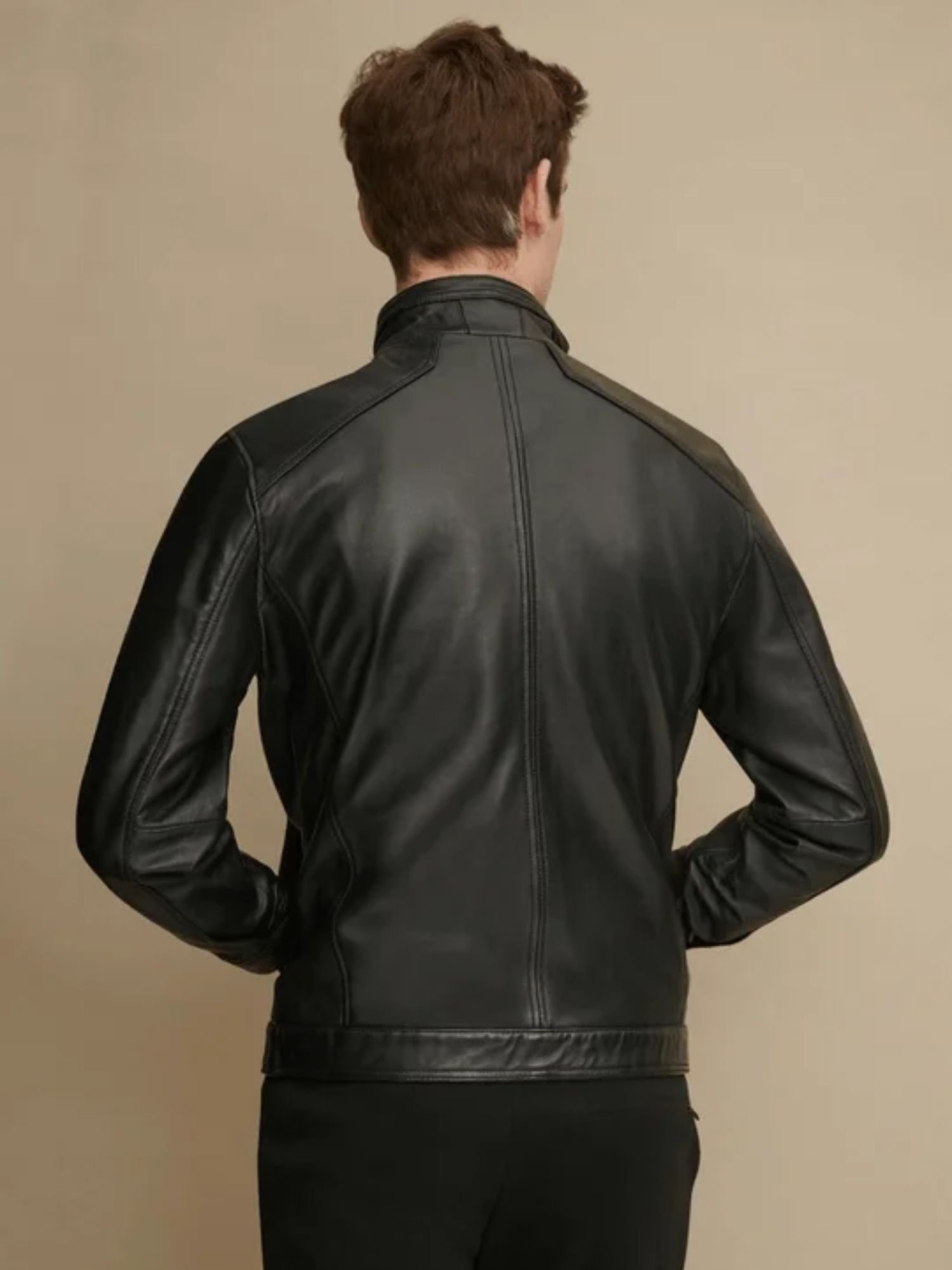The centerpiece of this design by Movie Jackets Hub is the knit-lined stand collar. Unlike standard collars that can feel cold or stiff, this knit lining provides a soft, warm touch against the skin while maintaining a sharp, upright profile. Combined with the intricate stitch detailing and structured shoulder panels, this jacket gives you a powerful, athletic frame the moment you zip it up.