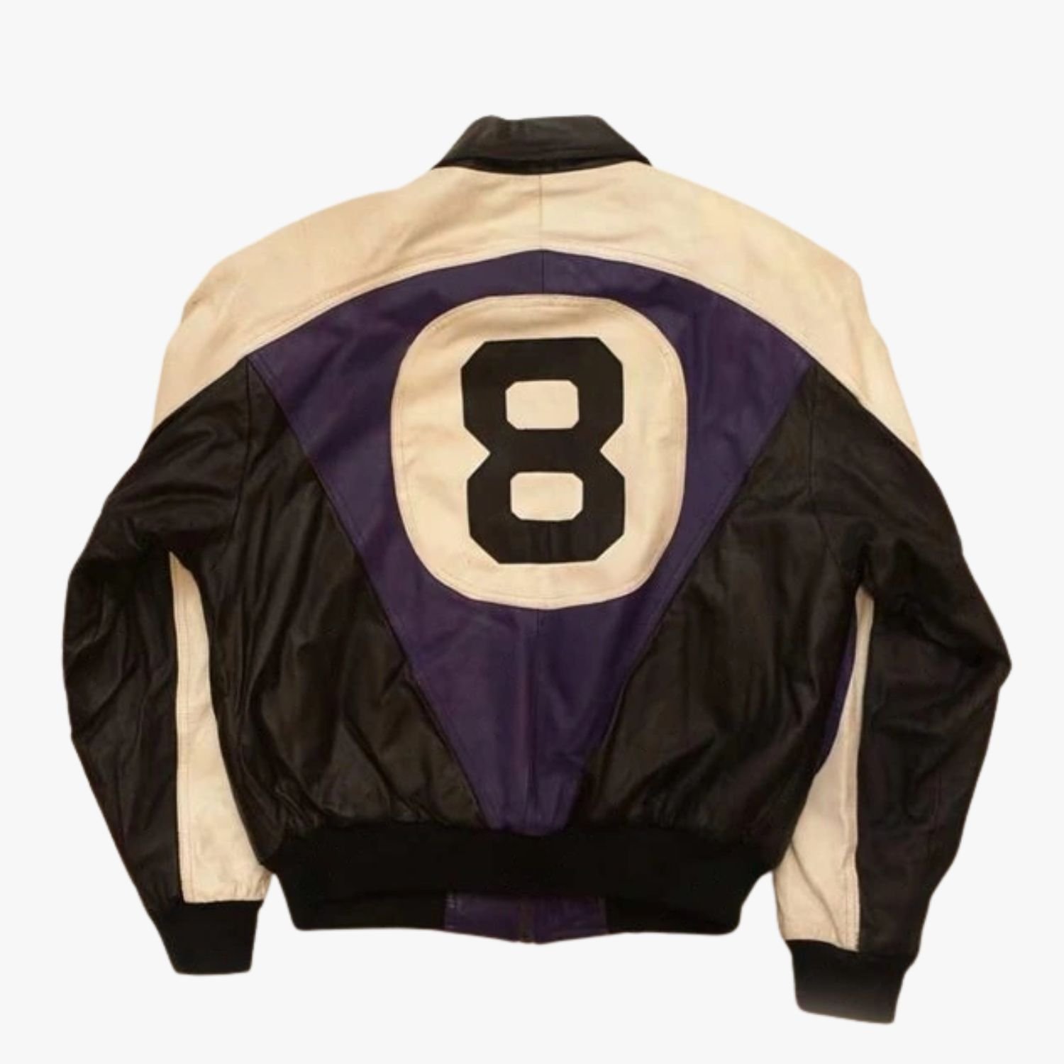 The 8 Ball Logo is prominently displayed on the jacket, adding a touch of retro flair. This logo, inspired by classic billiards imagery, introduces a playful yet sophisticated element to the design. Its strategic placement highlights the jacket’s unique style, making it a standout piece in any wardrobe.