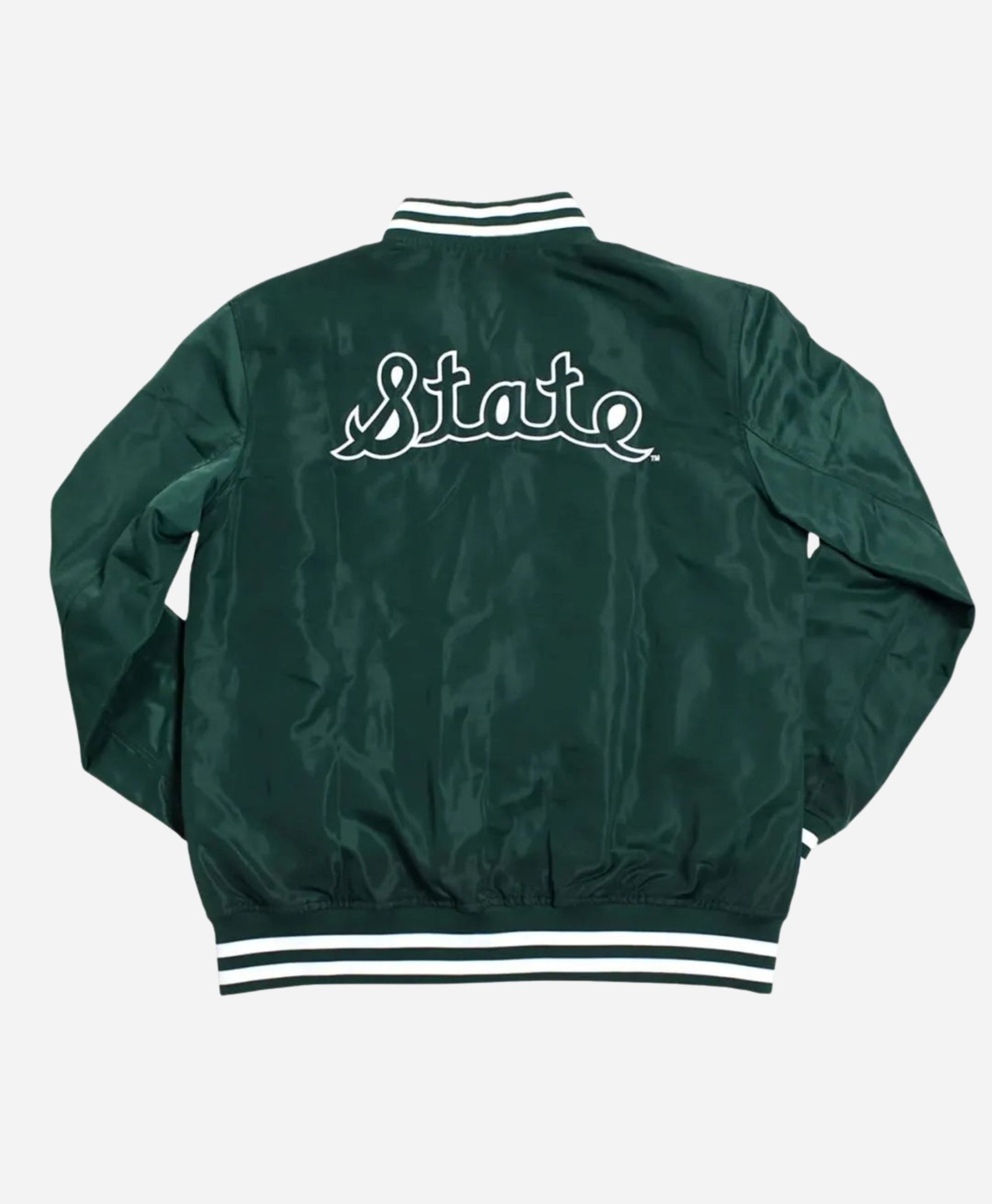 Step into the spotlight and showcase your team pride with the Michigan State Spartans The Legend Full Snap Satin Jacket. This isn’t just fan gear; it’s a high-end fashion statement designed for those who live and breathe the Spartan spirit. Crafted from premium-quality satin, the jacket features a lustrous green finish that captures the light and reflects the rich heritage of Michigan State University. Whether you are heading to Spartan Stadium or navigating the city streets, this jacket ensures you stand out with a sophisticated, athletic edge.