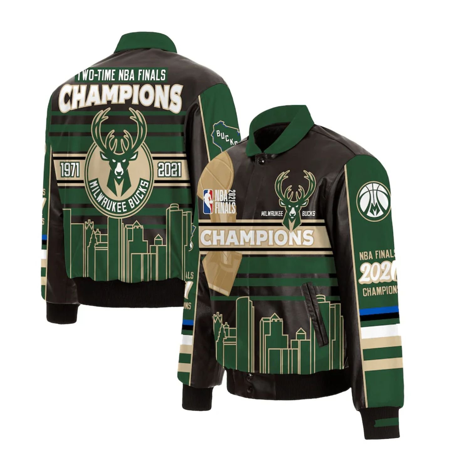 Milwaukee Bucks Printed Leather Jacket For Sale