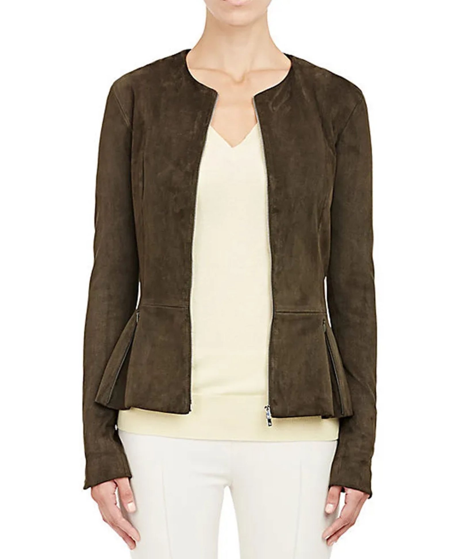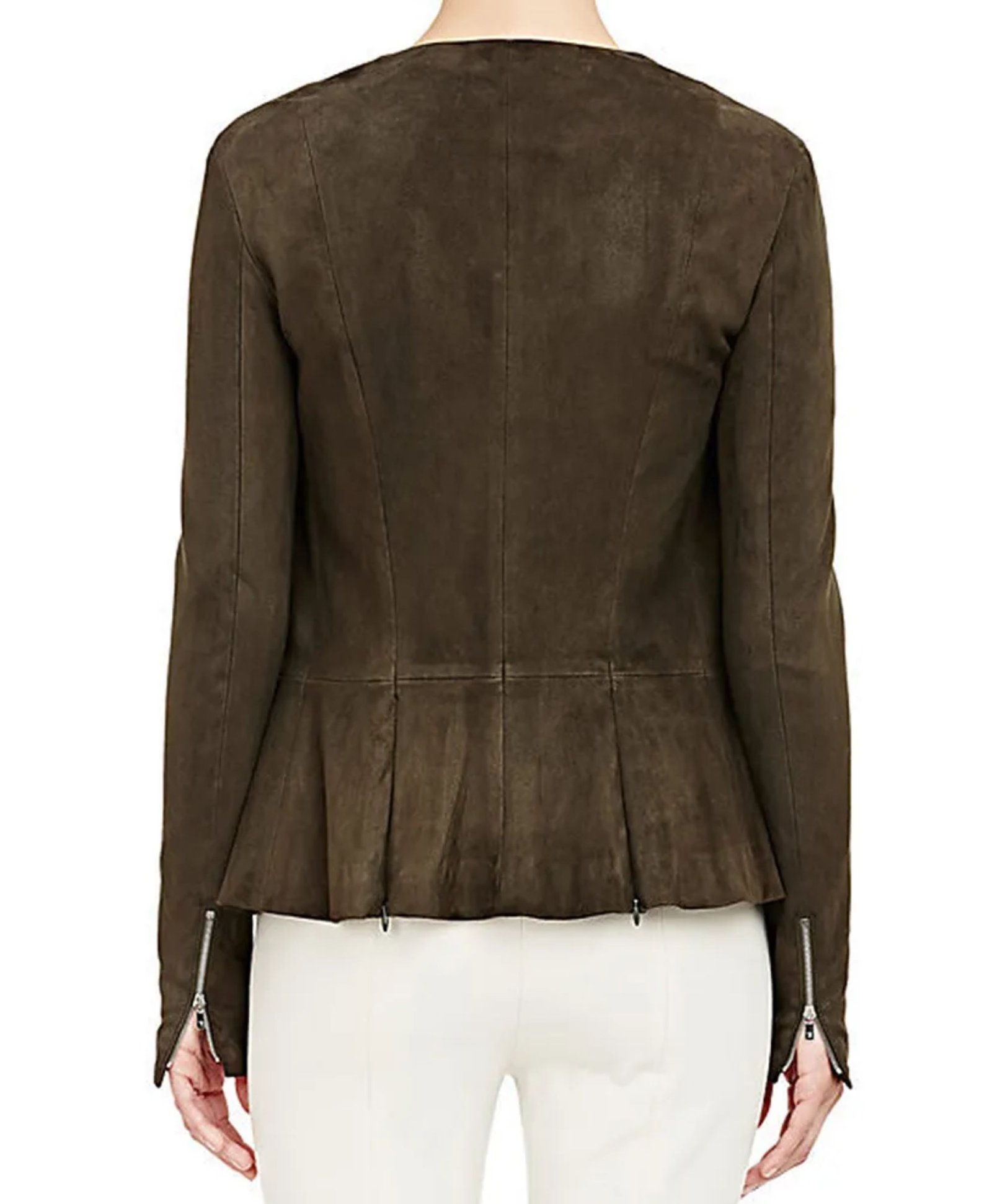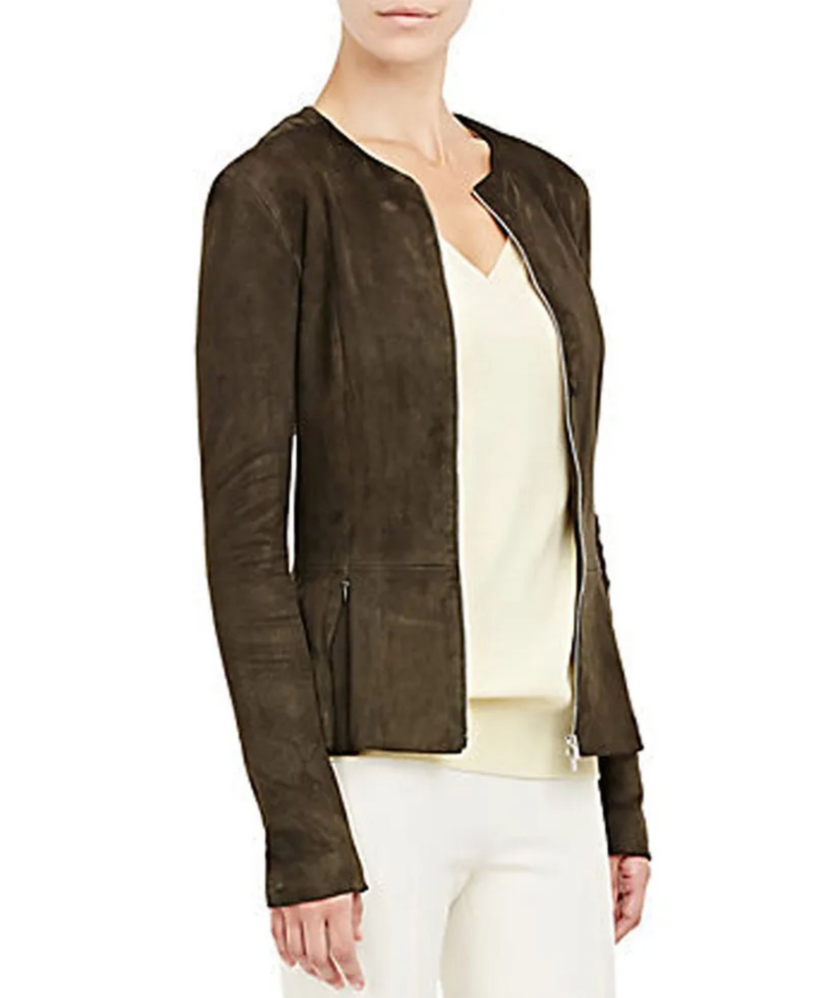 Alice Vaughan The Catch Season 01 Tv Series Mireille Enos Green Suede Leather Peplum Zipper Jacket