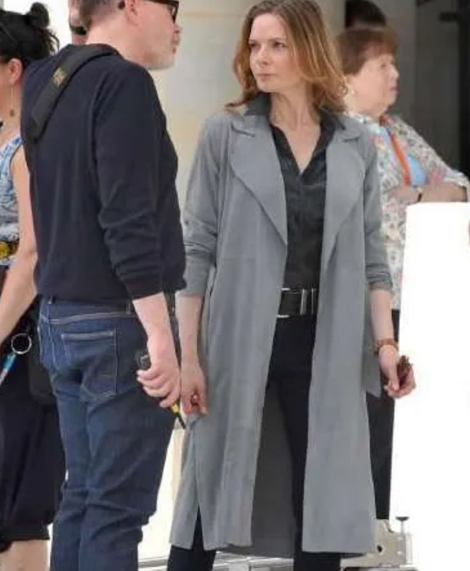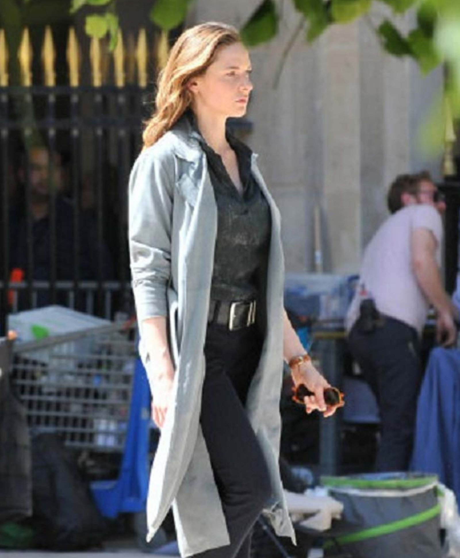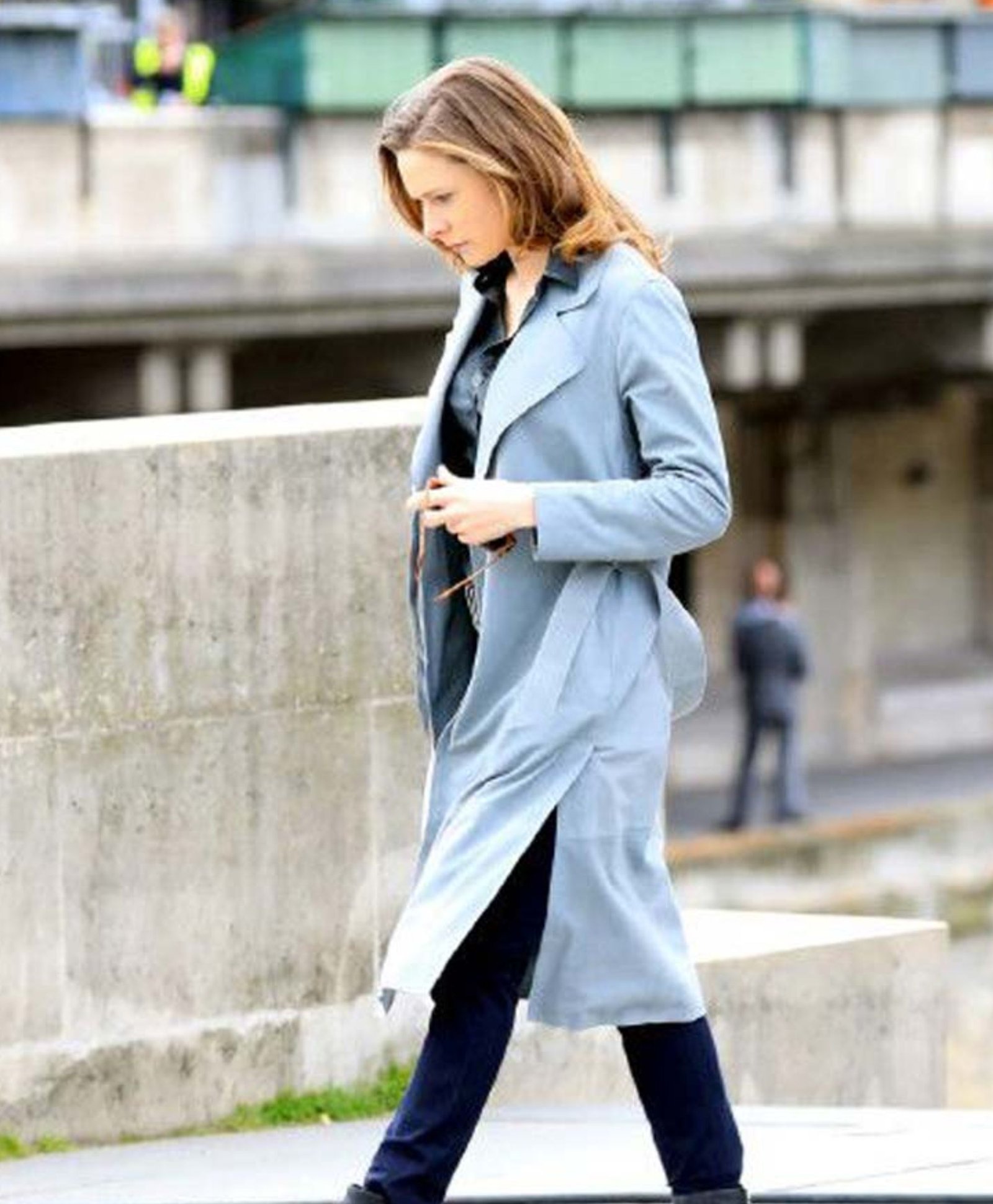 Rebecca Ferguson Film Mission Impossible 6 Ilsa Faust Blue Wrap Belted Robe Trench Long Coat