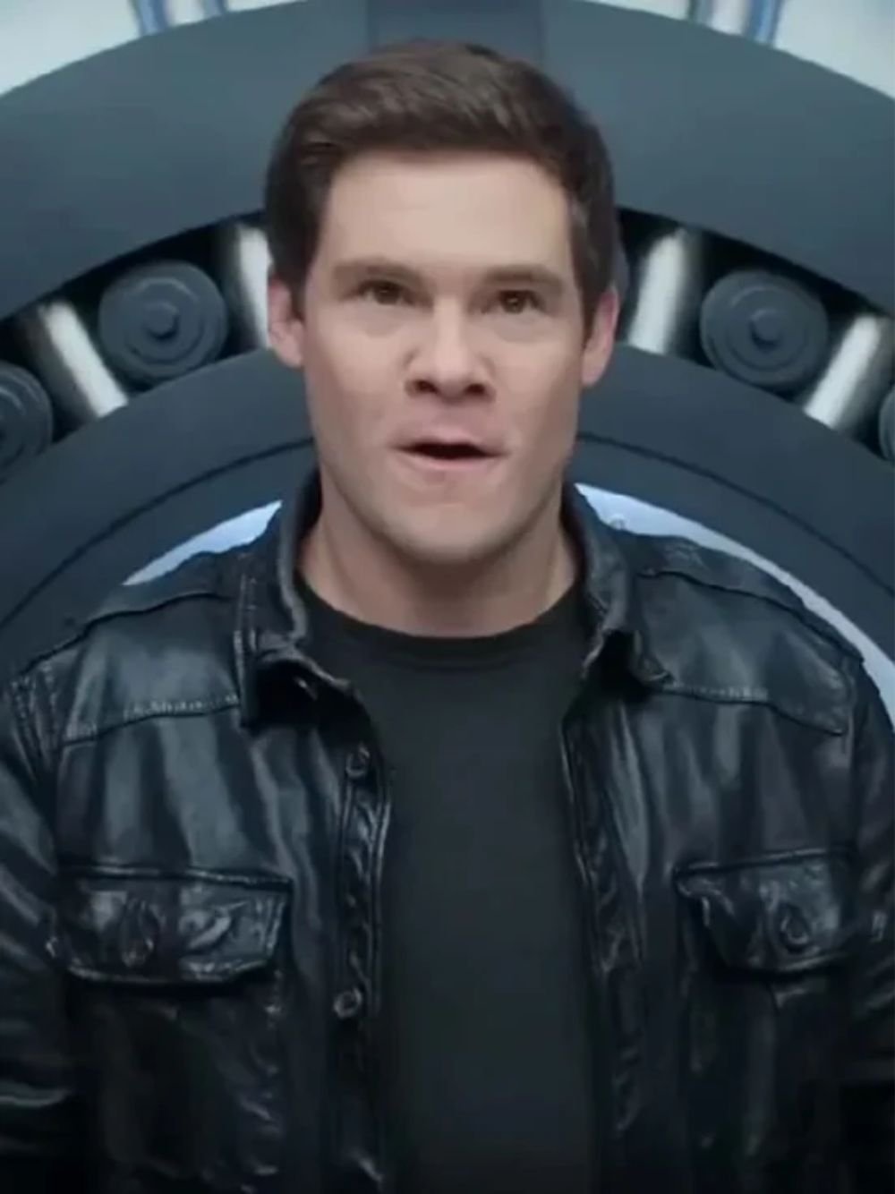 Adam Devine Movie The Out Laws 2023 Owen Browning Black Leather Jacket