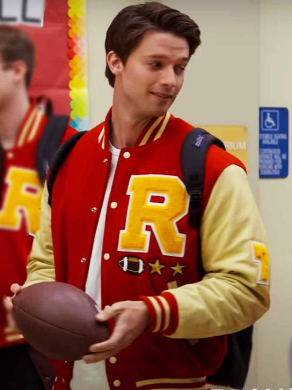 Movie jacket hub presented Patrick Schwarzenegger Moxie (2021) Mitchell Wilson Fleece Jacket by Movie Jackets Hub, which is snazzy. The material which is utilized in this jacket is fleece, which is very fine. To make this jacket more stylish, we design a viscose lining on its inner side. The collar style is the rib-knitted plan. The jacket has a snap-buttoned kind of conclusion. Moxie 2021 Mitchell Wilson fleece jacket has rib knitted cuffs on both sides. It is accessible in a red tone with a yellow design, which is appealing. Try not to pass up on a chance to get this coat. The delivery of this jacket is free of cost from all over the world.