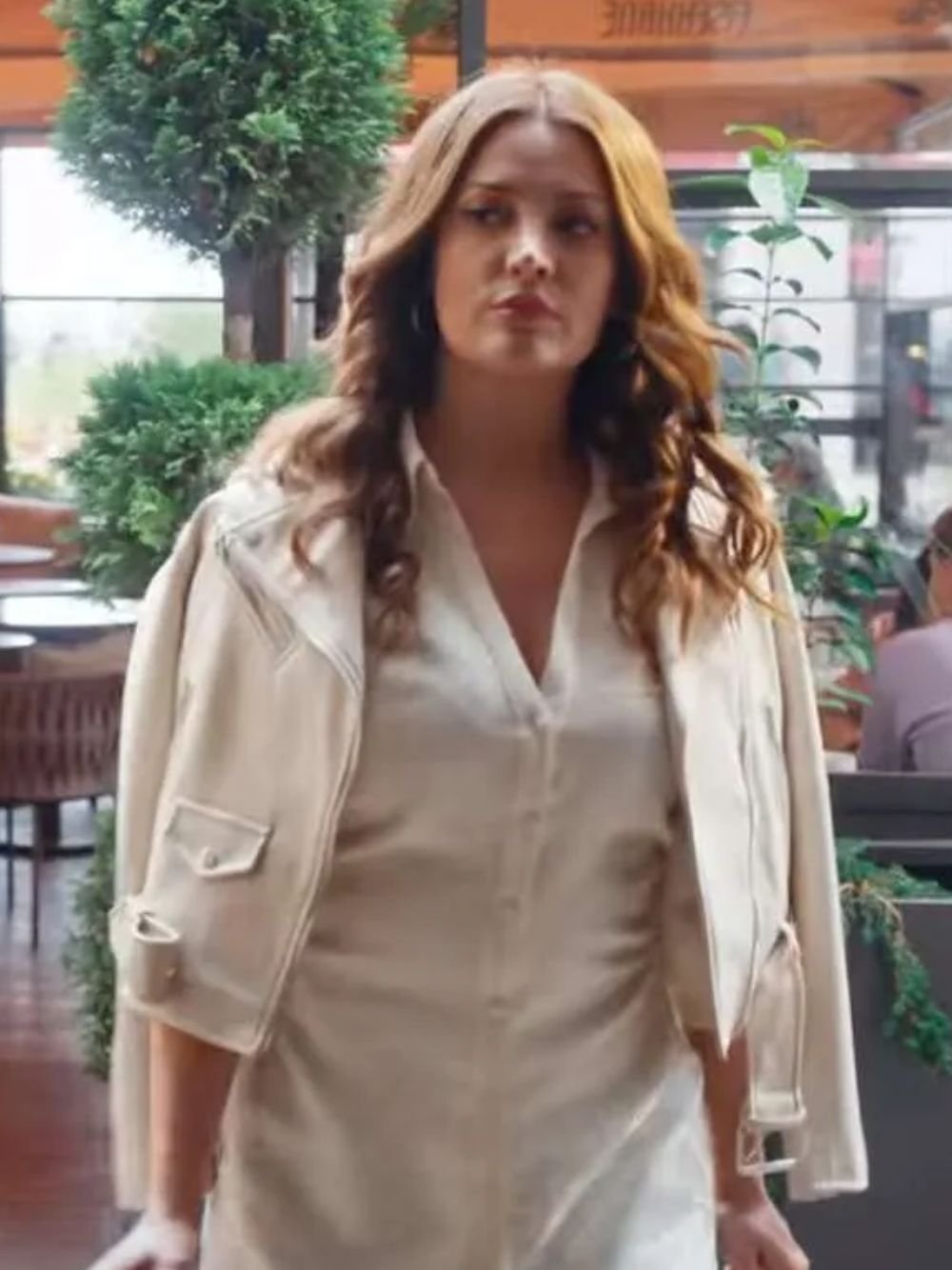 Irem Sak TV Series As the Crow Flies Season 02 Müge Türkmen White Crop Leather Jacket