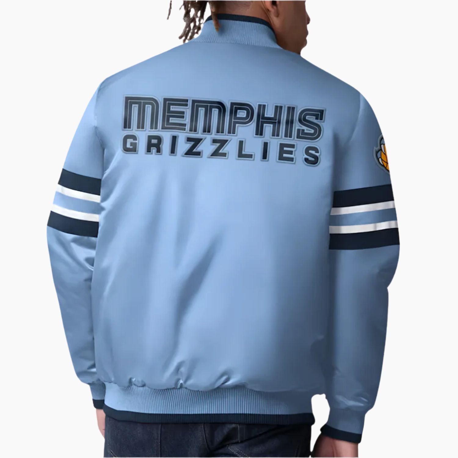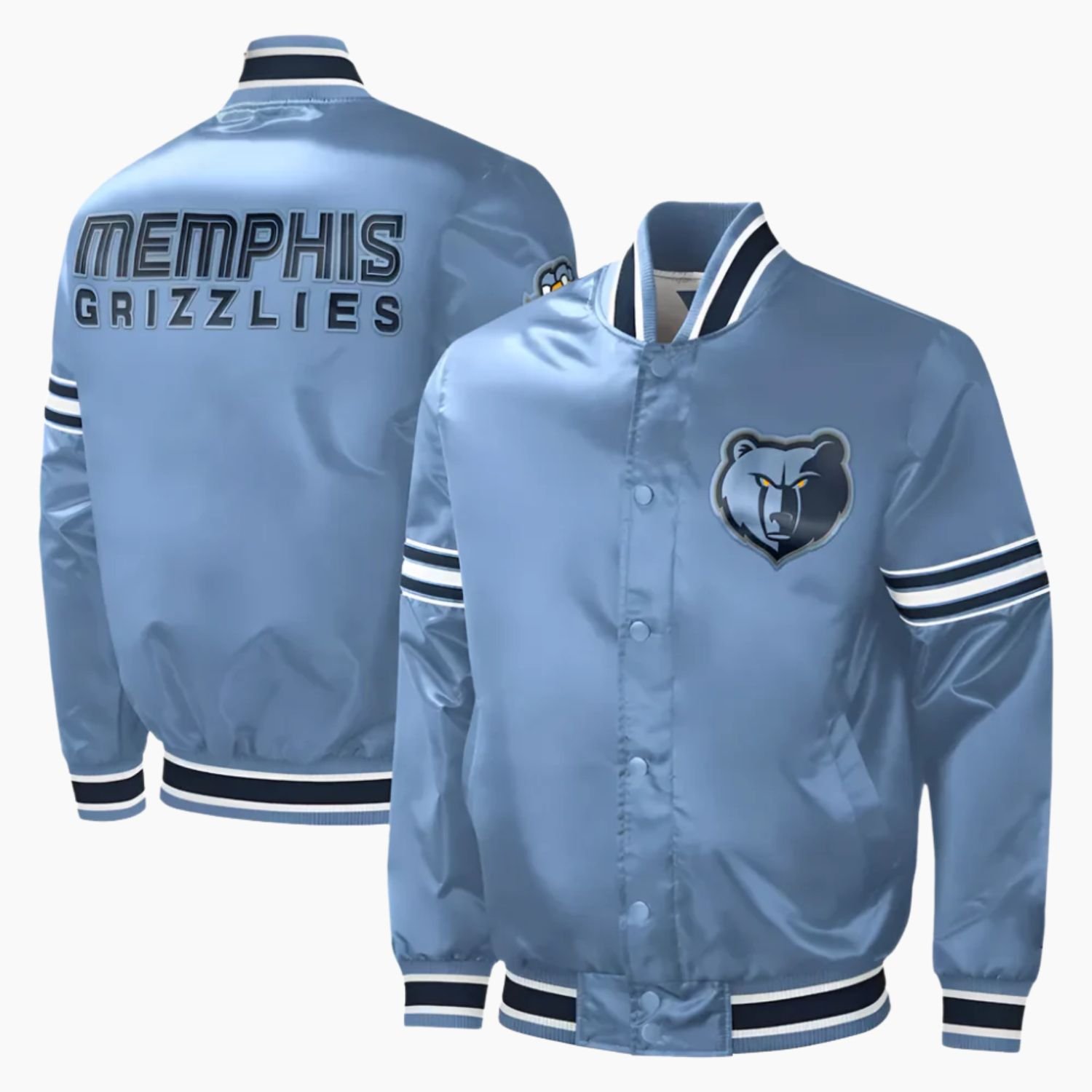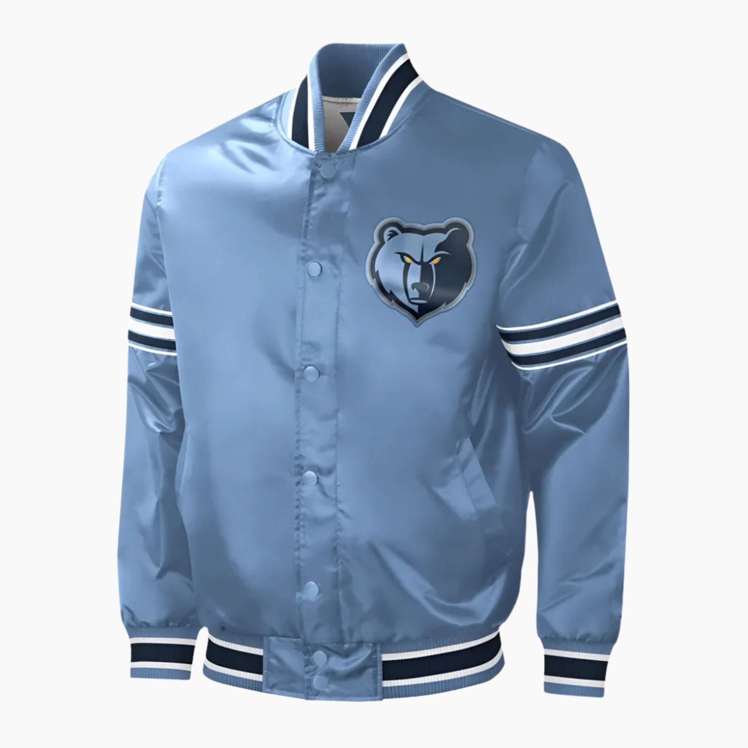 Channel the fierce grit and grind of the 901 with the NBA Memphis Grizzlies Satin Varsity Jacket. Inspired by the relentless energy of Memphis basketball, this jacket is a vibrant tribute to one of the NBA’s most exciting franchises. Crafted from premium-grade satin, the jacket features a brilliant light blue finish that mirrors the team’s signature “Beale Street Blue.” Whether you are courtside at the FedExForum or hitting the city streets, this jacket by Movie Jackets Hub provides a high-shine, athletic look that ensures your loyalty to the Grizzlies is unmistakable.