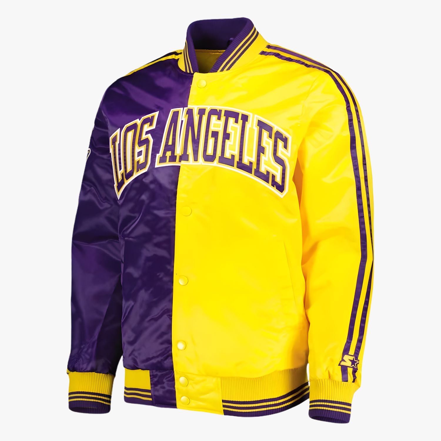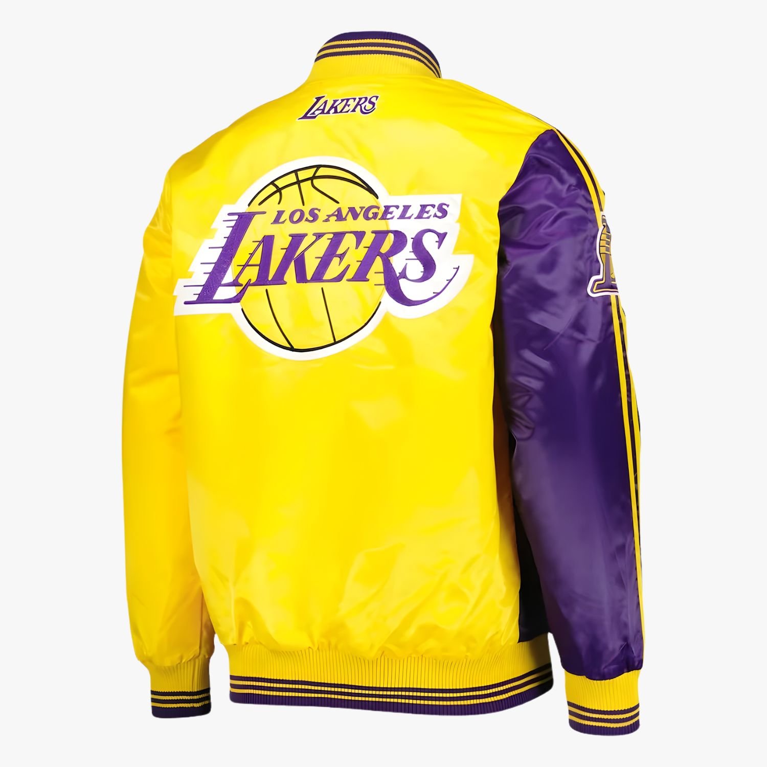 This jacket by Movie Jackets Hub is meticulously engineered using a heavyweight wool body in deep Lakers purple, paired with 100% genuine leather sleeves in vibrant gold. The heavy-duty material mix provides a substantial feel and a luxury texture that synthetic alternatives simply cannot match. Inside, a soft-touch comfort lining ensures you stay warm during those cool night games at the arena or out on the city streets.