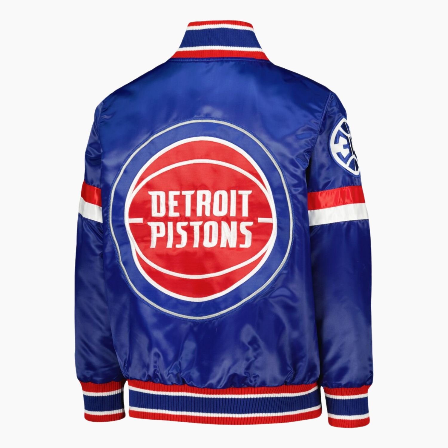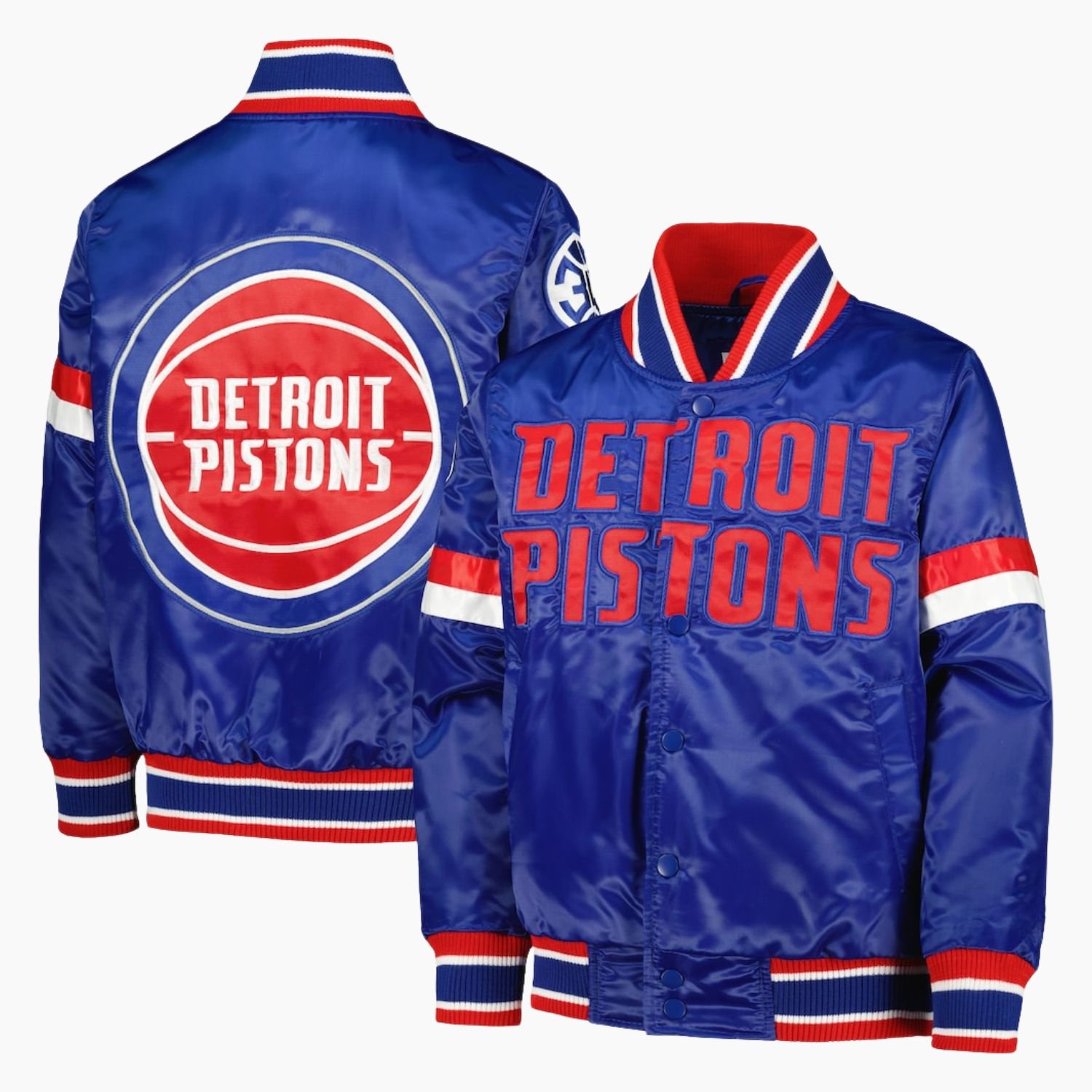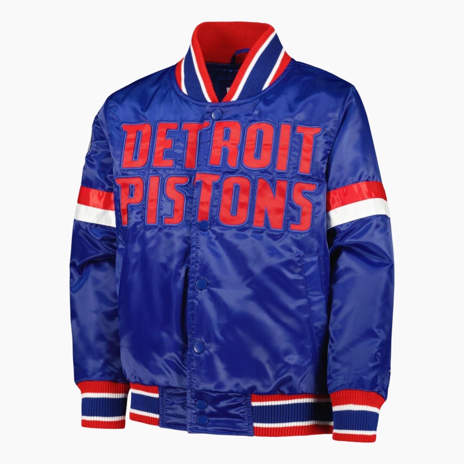 Perfect for young Pistons fans, this satin varsity jacket combines comfort, quality, and authentic NBA style in one standout piece.
