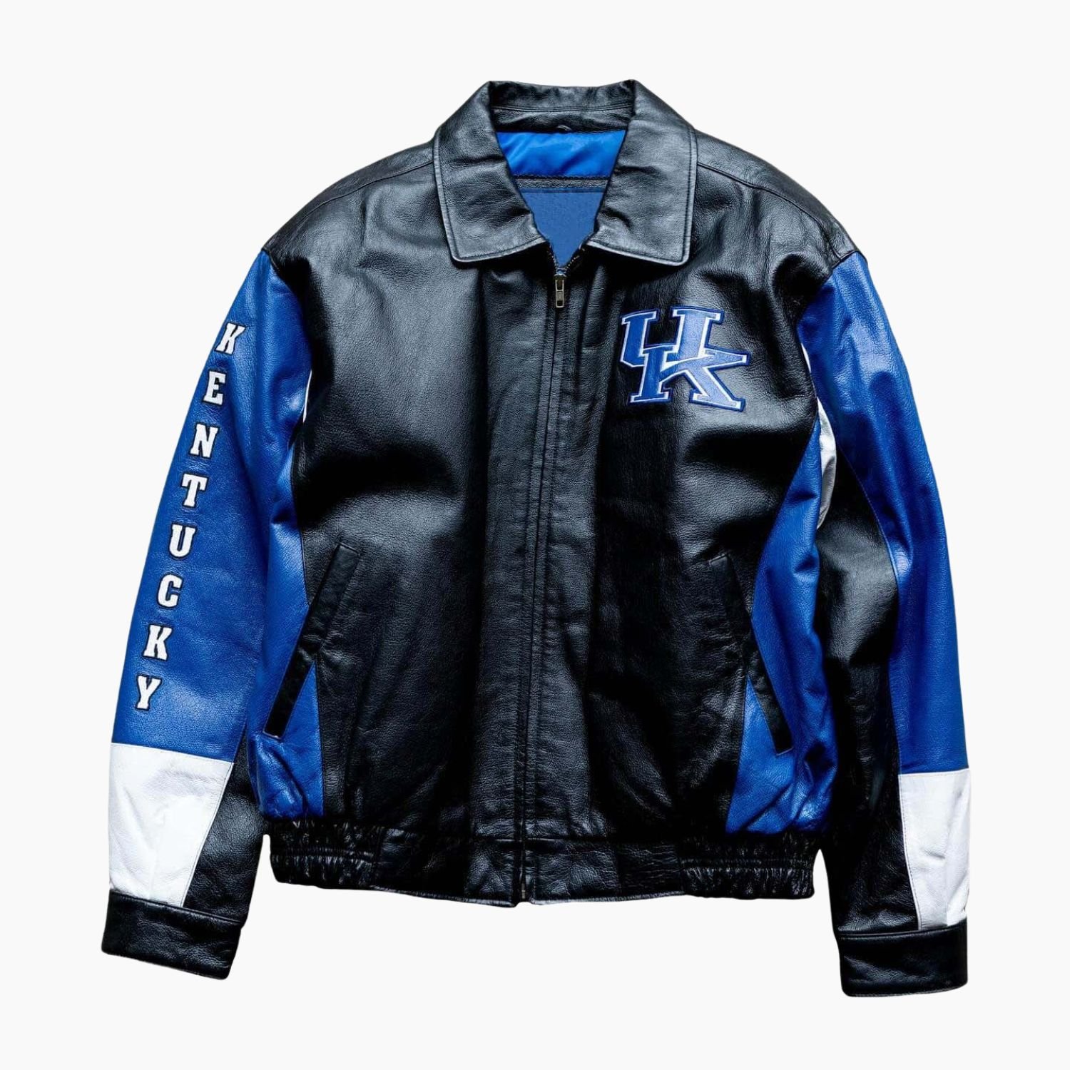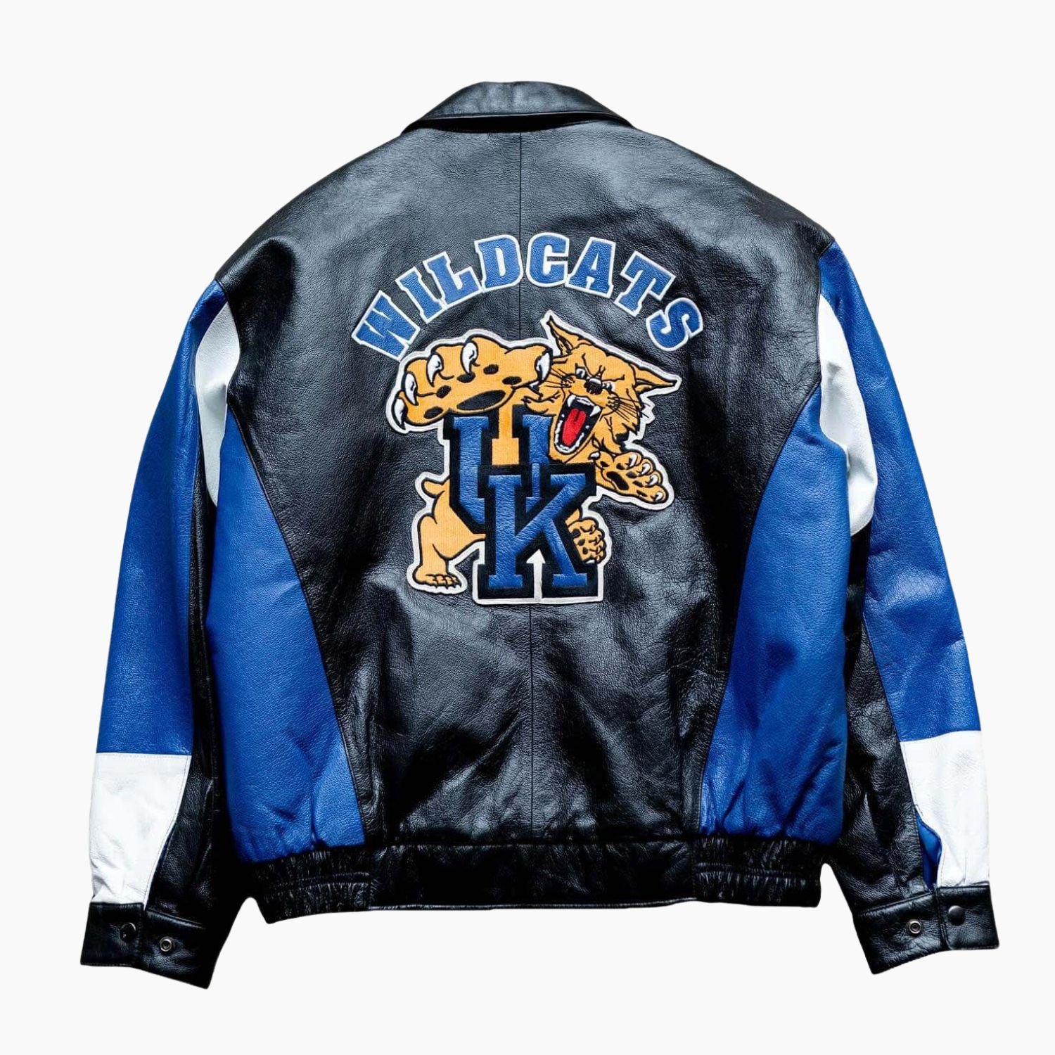 NCAA Kentucky Wildcats Black Blue Varsity Leather Jacket