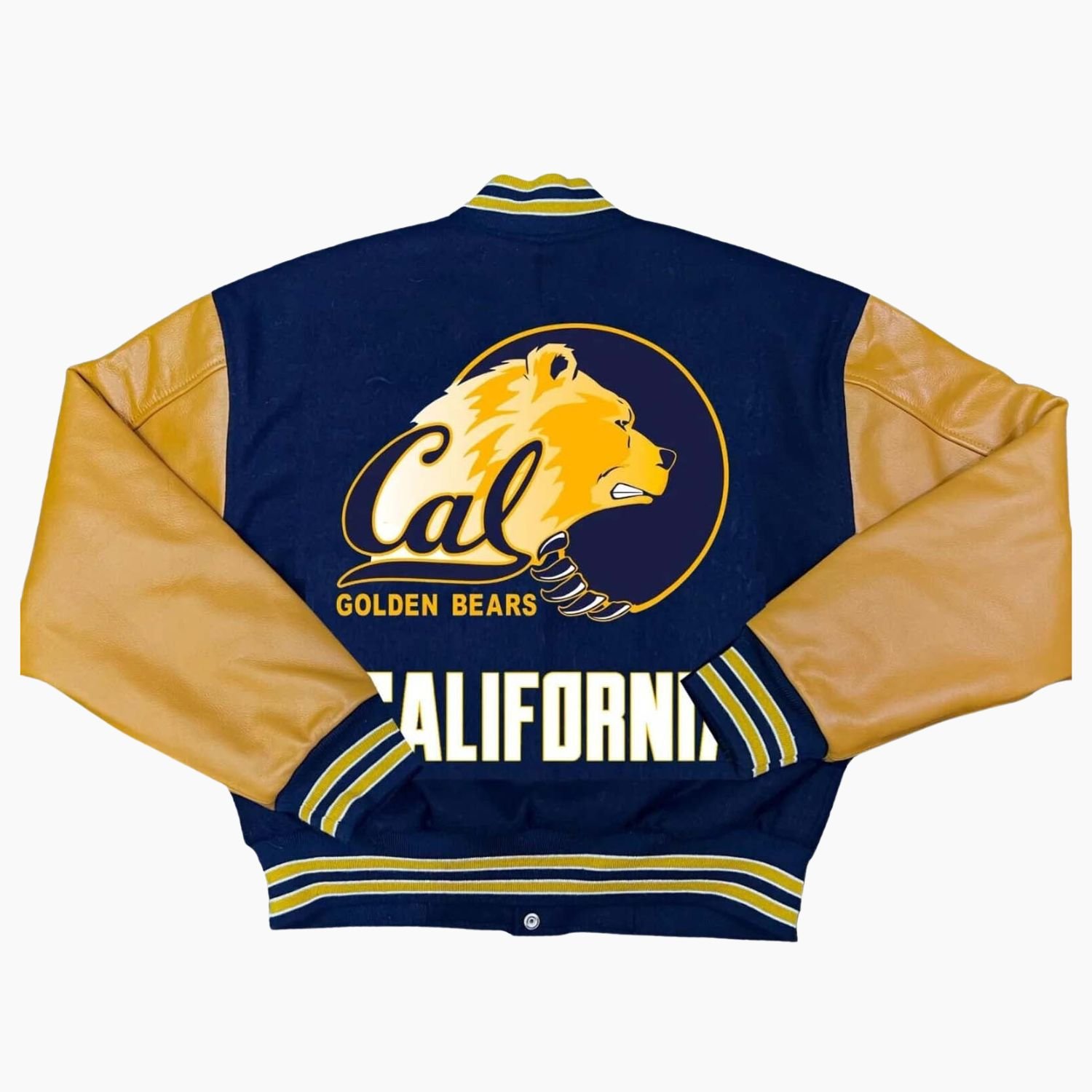 The design of this Golden Bears jacket honors the classic American letterman heritage while integrating elite modern craftsmanship. It features a striking navy blue and gold color palette, reflecting the “Berkeley Blue” and “California Gold” that have represented the university since 1868. The rib-knitted collar, cuffs, and hemline provide a snug and secure fit, locking in warmth and ensuring the jacket maintains its iconic bomber-style profile through years of use. This signature striped ribbing adds a touch of retro athletic flair that has defined collegiate fashion for over a century. The front is engineered with a classic snap-button style closure, providing a secure fit and a traditional varsity aesthetic that transitions effortlessly from the classroom to the city.