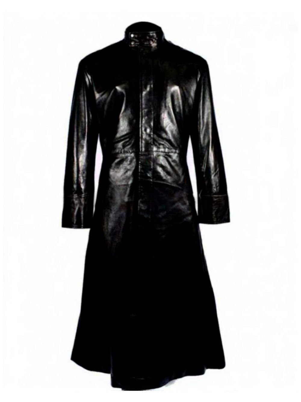 Step into the world of The Matrix with the iconic Neo Leather Long Trench Coat. Crafted from premium genuine leather, this sleek black trench coat combines style and durability for a striking look. The interior is lined with soft viscose for maximum comfort, making it perfect for extended wear.
