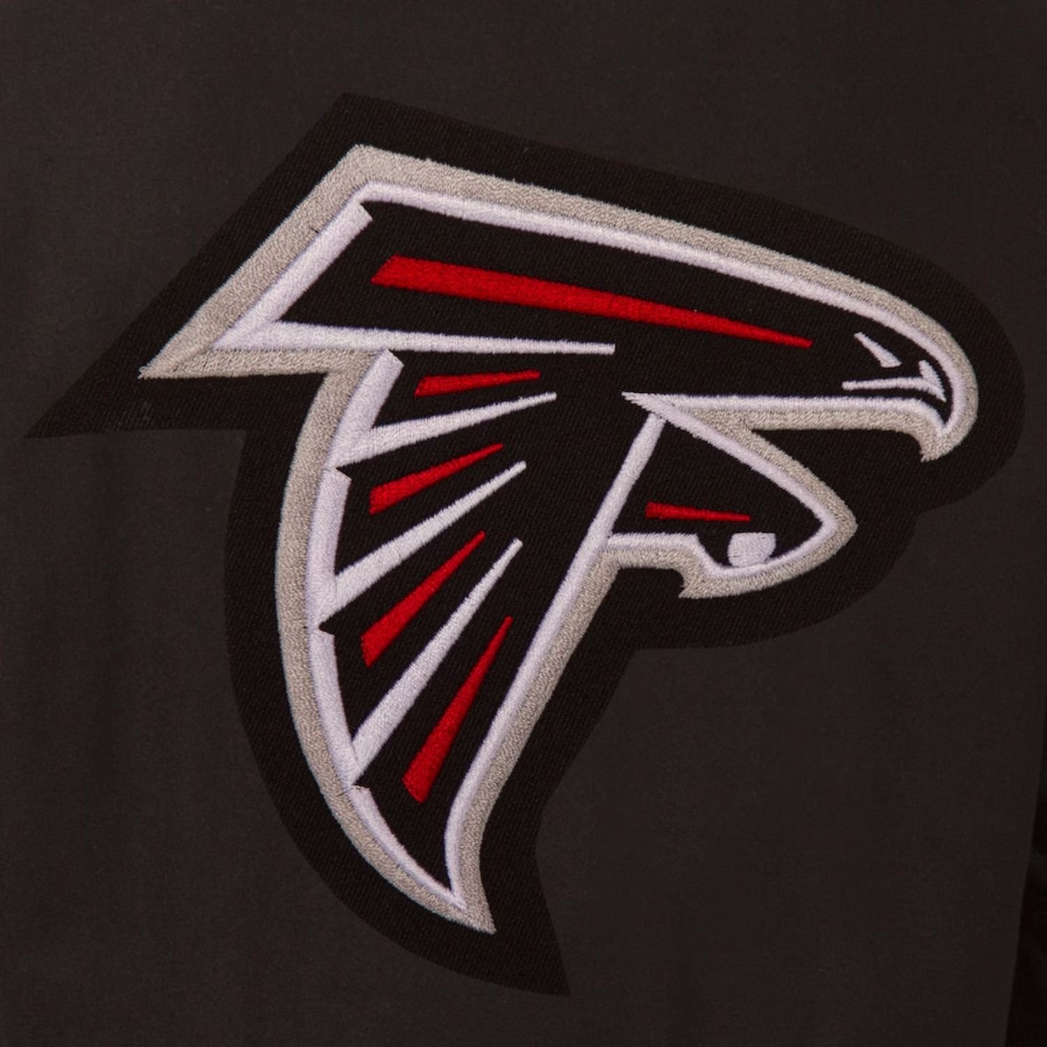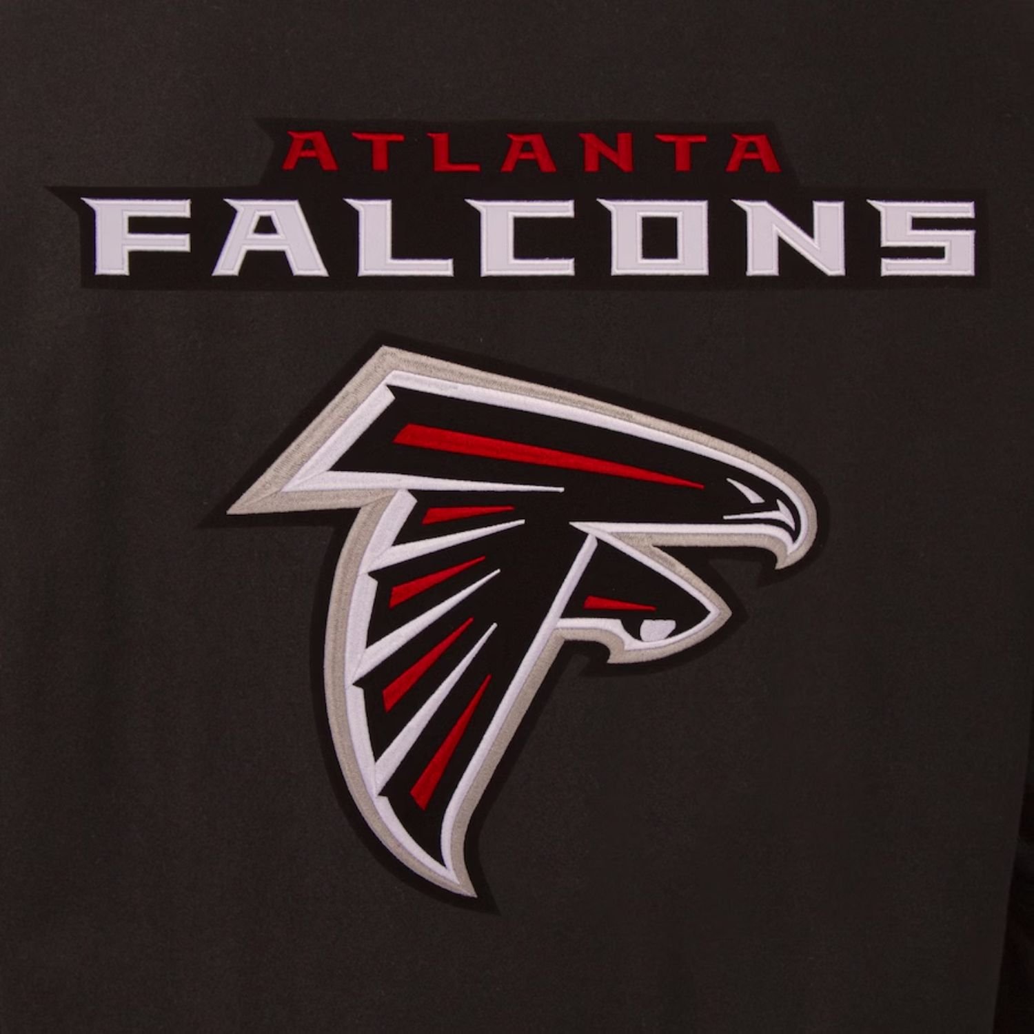 Designed for both men and women, it includes two outside waist pockets for convenient storage of essentials. Finished in a sleek black color, this jacket delivers a modern twist on classic fan apparel while staying true to the Falcons’ iconic spirit.