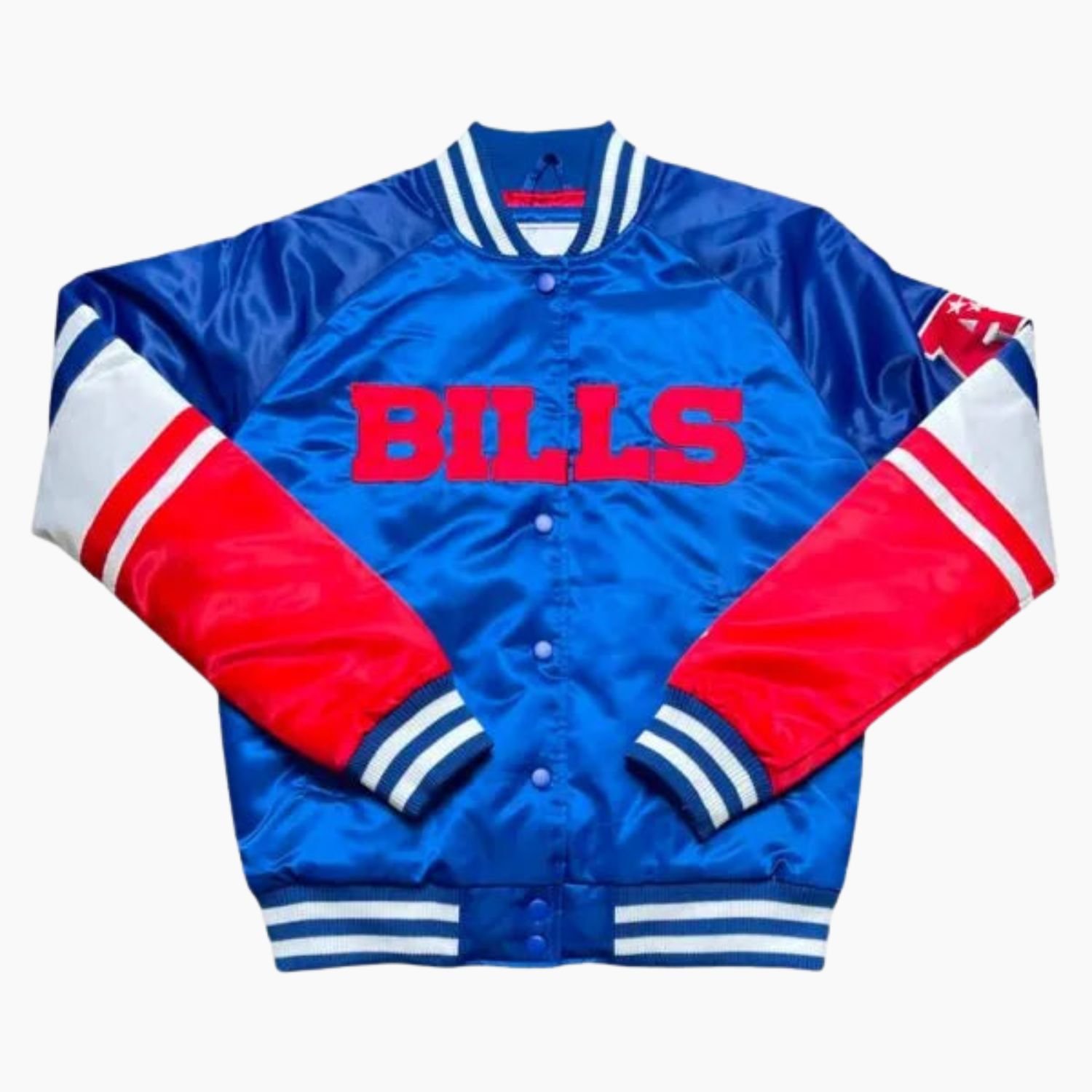Finished in a striking fusion of red, white, and blue, the NFL Buffalo Bills Royal Blue and Red Varsity Satin Jacket is ideal for fans who want both style and team spirit. Free USA and worldwide shipping with fast delivery brings this iconic jacket directly to your doorstep.