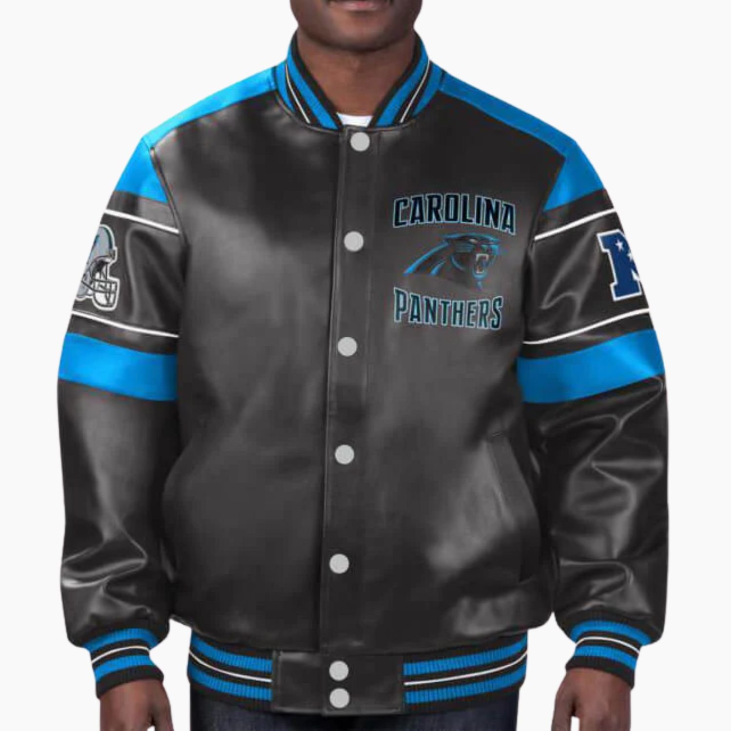Designed with vibrant Carolina Panthers team colors in a striking multicolor layout, this jacket captures attention without losing its refined appeal. Every element is thoughtfully constructed, from the structured panels to the meticulous stitching that reflects superior craftsmanship throughout the design.