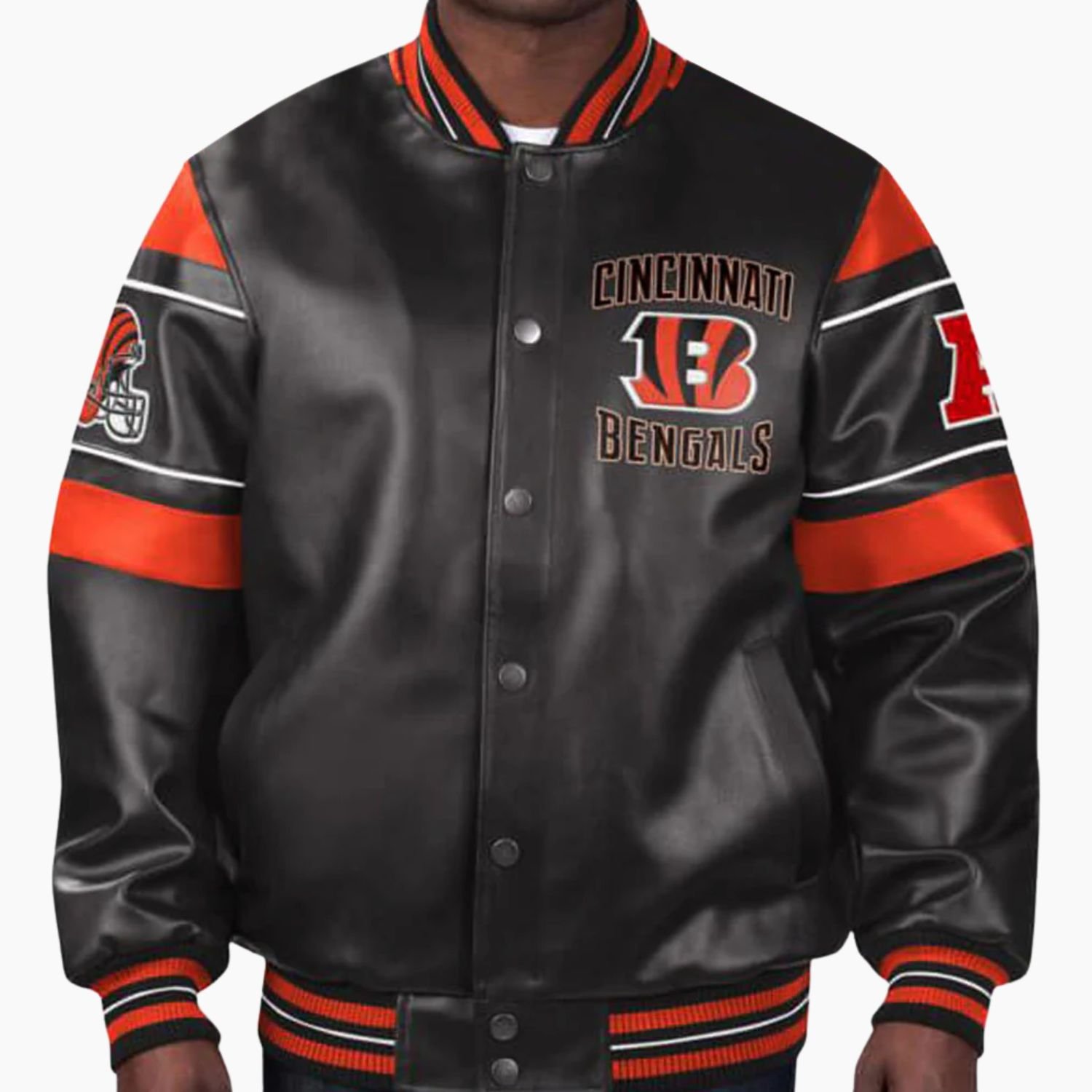 The NFL Cincinnati Bengals Multicolor Leather Jacket is an ideal choice for fans who value premium materials, authentic team representation, and bold football inspired fashion.
