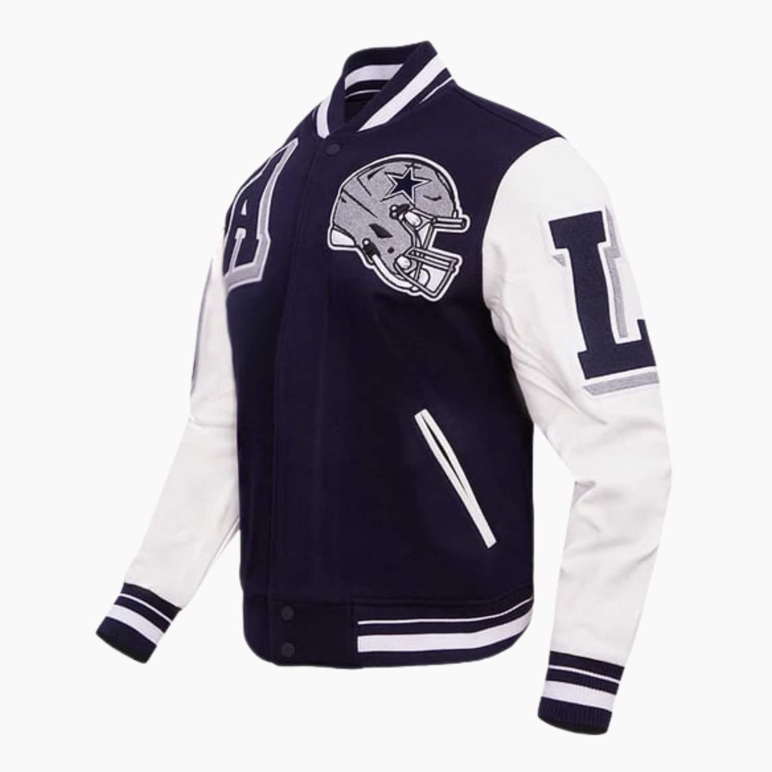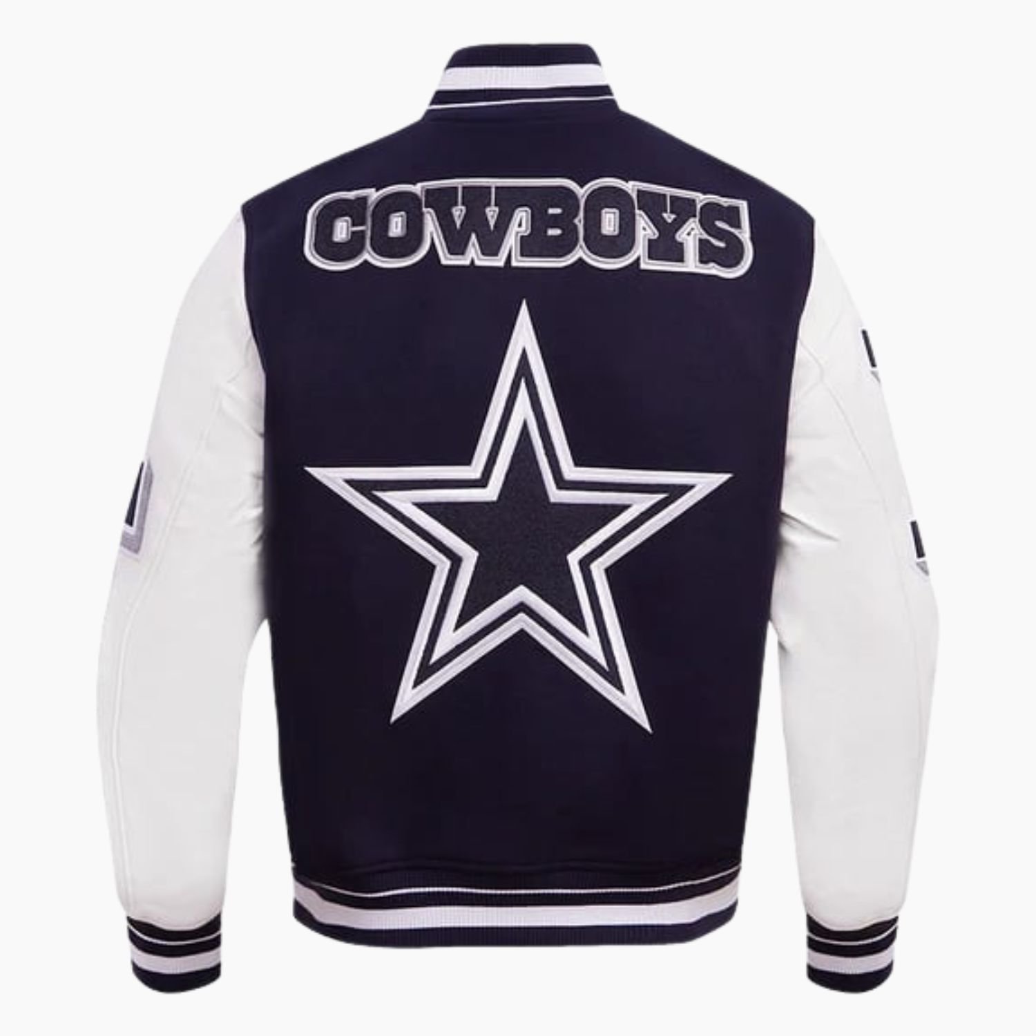 Elevate your fan status with a garment that embodies the prestige and history of the star. The NFL Dallas Cowboys Ribbed Wool Varsity Jacket is a masterclass in premium outerwear, combining the classic warmth of 100% premium wool with the rugged sophistication of full-length leather sleeves. This heavyweight bomber style is presented in a sleek, color-blocked black palette, offering a versatile and modern look for any Cowboys supporter. To ensure a premium wearing experience, the interior is lined with soft viscose fabric, providing a smooth layer of comfort that makes it ideal for long game days or cold evenings out.