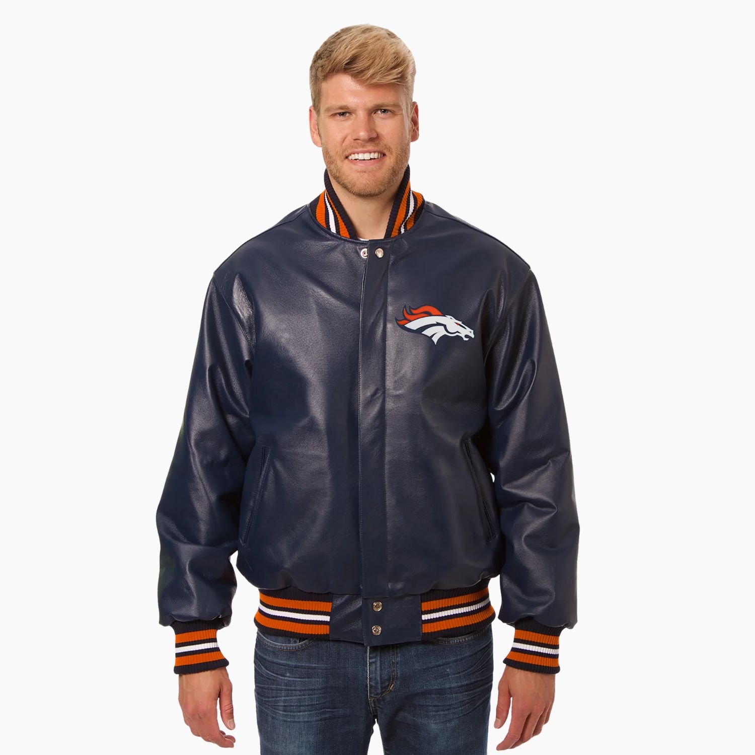 Expert craftsmanship and fine quality stitching ensure that the NFL Denver Broncos Leather Varsity Jacket stands the test of time. Designed for both men and women, it offers a unisex fit that makes it a versatile option for fans of all ages. Whether you are expanding your fan gear collection or looking for an authentic high quality jacket jacket with standout appeal, this Broncos varsity jacket is a winning choice. Enjoy Free USA and Worldwide Shipping with every order.