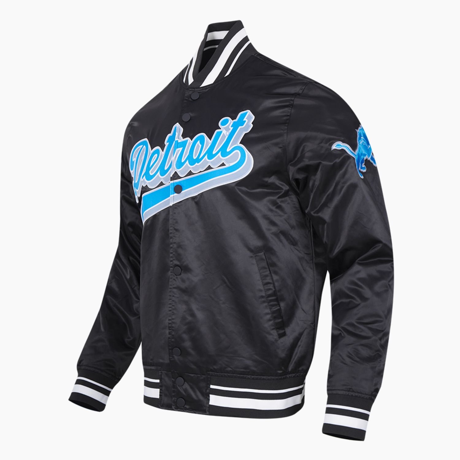 Showcase your loyalty to the Motor City with the NFL Detroit Lions Script Tail Satin Jacket, a piece that perfectly blends retro athletic vibes with modern streetwear flair. This jacket is crafted from high-quality satin that provides a brilliant blue sheen, echoing the team’s classic colors with a premium finish. The lightweight nature of the satin makes it an ideal choice for layering throughout the football season, offering a smooth and sleek exterior that stands out in the stands at Ford Field. To ensure maximum comfort, the interior is lined with a soft viscose fabric, providing a breathable and gentle feel that makes it perfect for all-day wear.