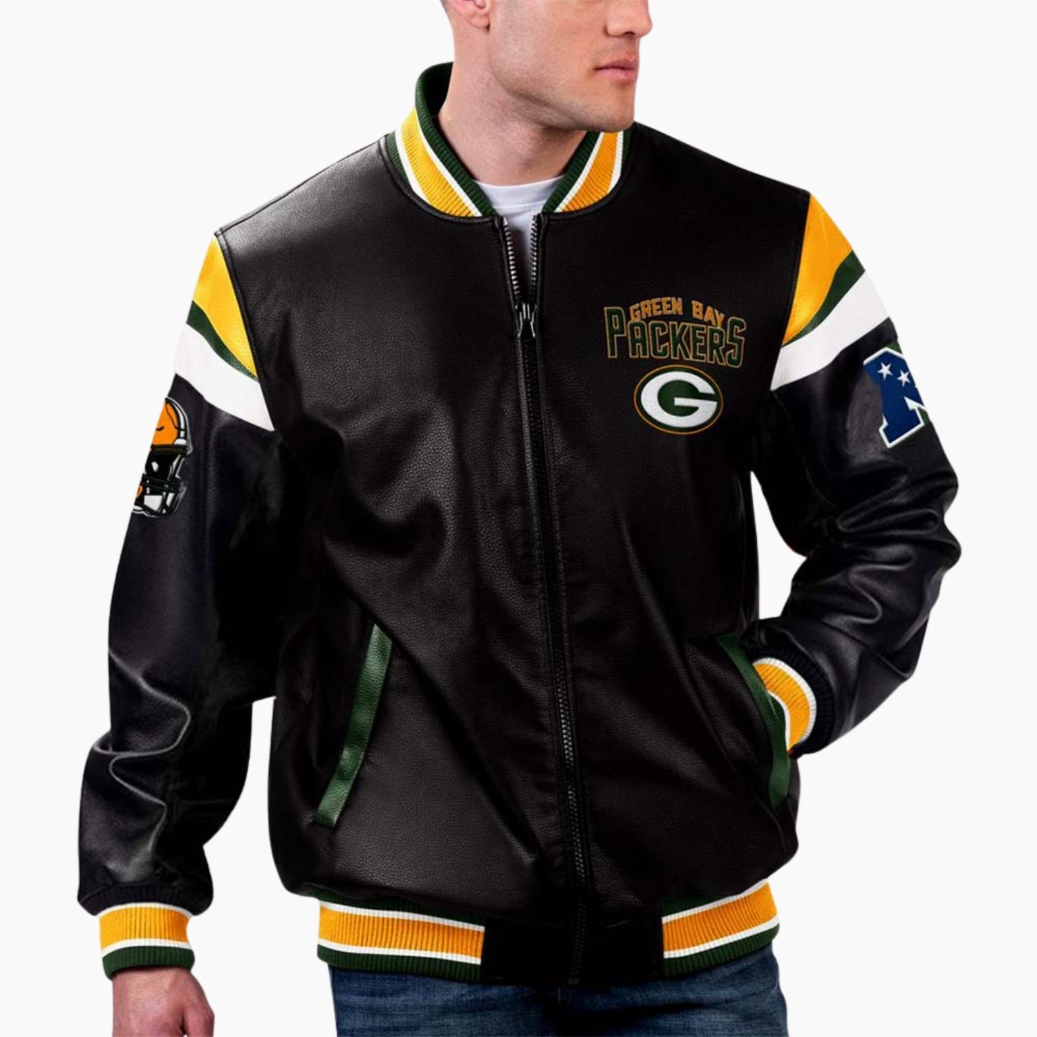 NFL Green Bay Packers Varsity Leather Jacket For Men and Women