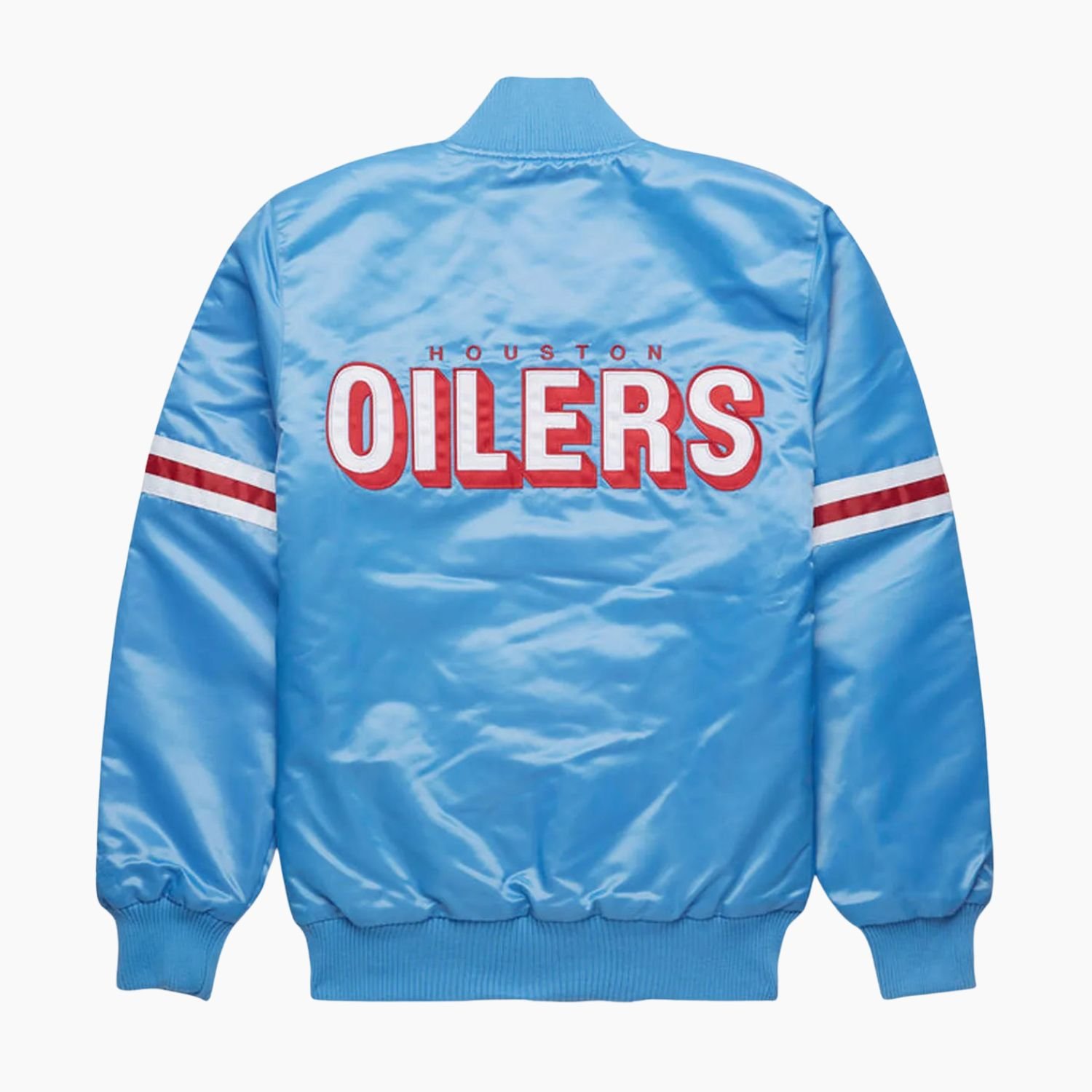 The Houston Oilers Light Blue Satin Jacket by Movie Jackets Hub is an ideal choice for fans who want to celebrate football history while enjoying premium craftsmanship and effortless style in a versatile outerwear piece.