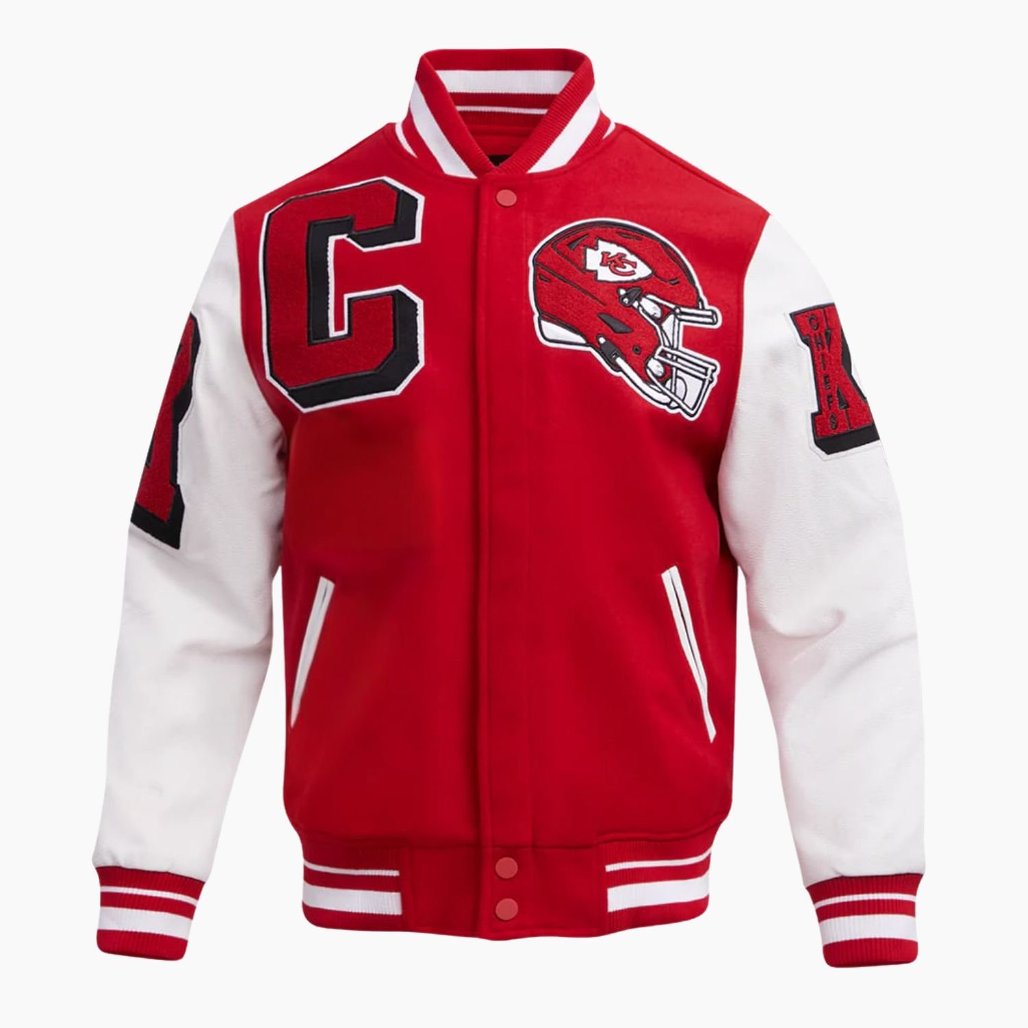 Functionality is seamlessly integrated into this stylish design to cater to the modern sports enthusiast. The full-length leather sleeves provide a tough, protective layer, while the high-quality front zipper closure offers a secure and modern way to fasten the jacket against the elements. To accommodate your game-day essentials, we have included two spacious exterior waist pockets, perfect for keeping your hands warm or safeguarding your smartphone and tickets. This NFL Kansas City Chiefs Mashup Varsity Jacket is more than just fan gear; it is a symbol of a culture built on pride, poise, and relentless victory. Join the ranks of the most stylish supporters in the league and elevate your wardrobe with this premium piece from Movie Jackets Hub.
