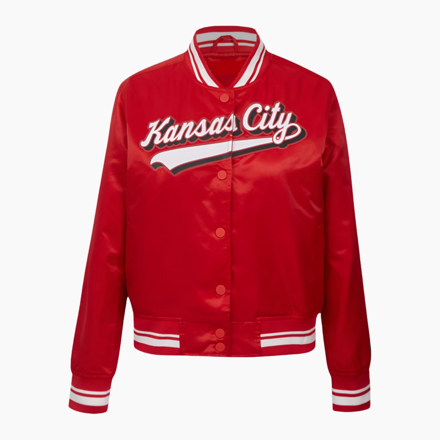 Ignite your game-day passion and represent the powerhouse of the AFC with the NFL Kansas City Chiefs Script Tail Satin Jacket. This high-octane piece of fan apparel is designed for those who live and breathe the red and gold. Crafted from premium-grade satin, the jacket boasts a vibrant red finish that captures the light and the attention of the crowd. The satin fabric provides a sleek, polished exterior that is both lightweight and durable, making it the perfect choice for layering during those intense playoff runs or casual victory celebrations. To ensure you stay comfortable through every touchdown, the interior is lined with a soft viscose fabric, offering a smooth, breathable layer that feels exceptional against the skin.