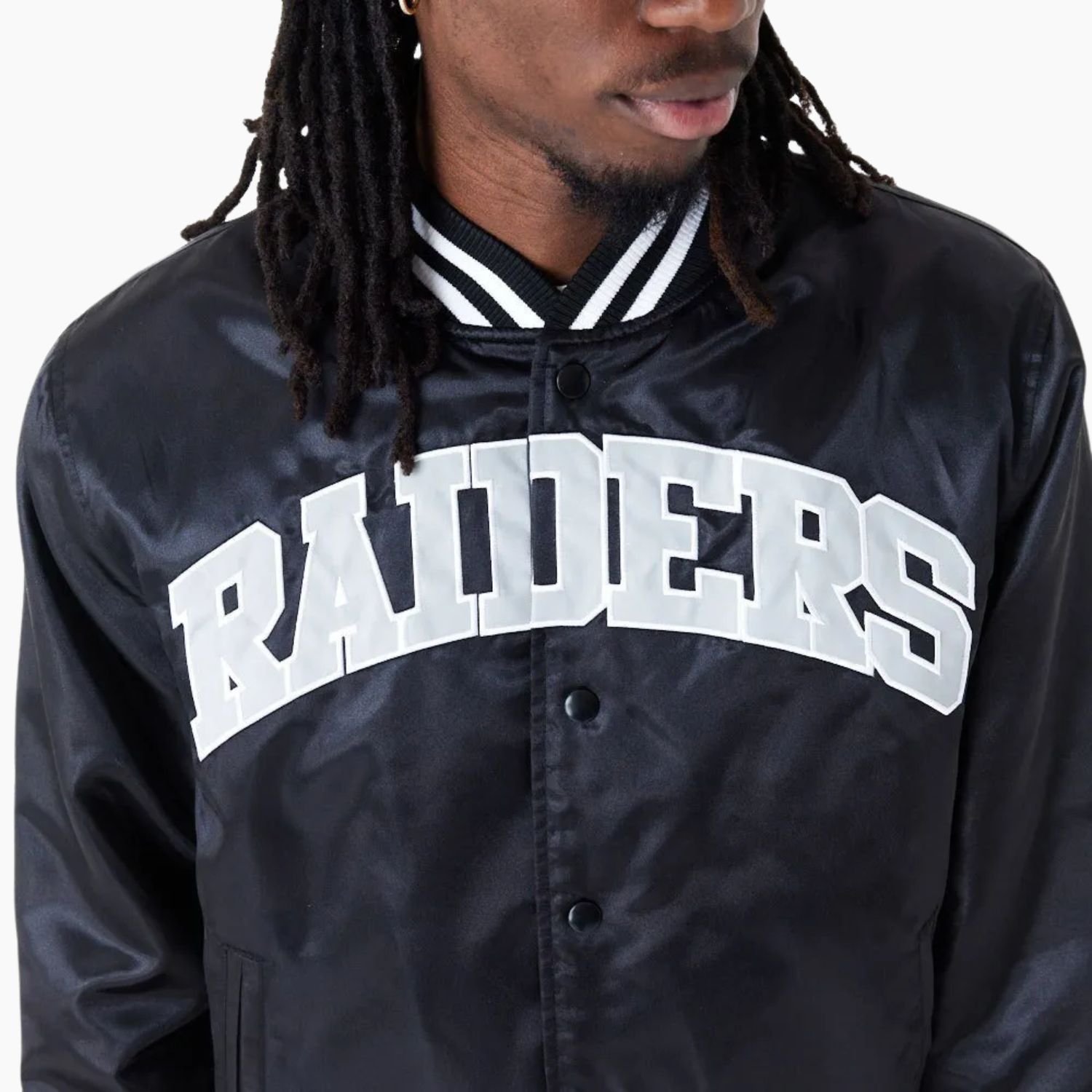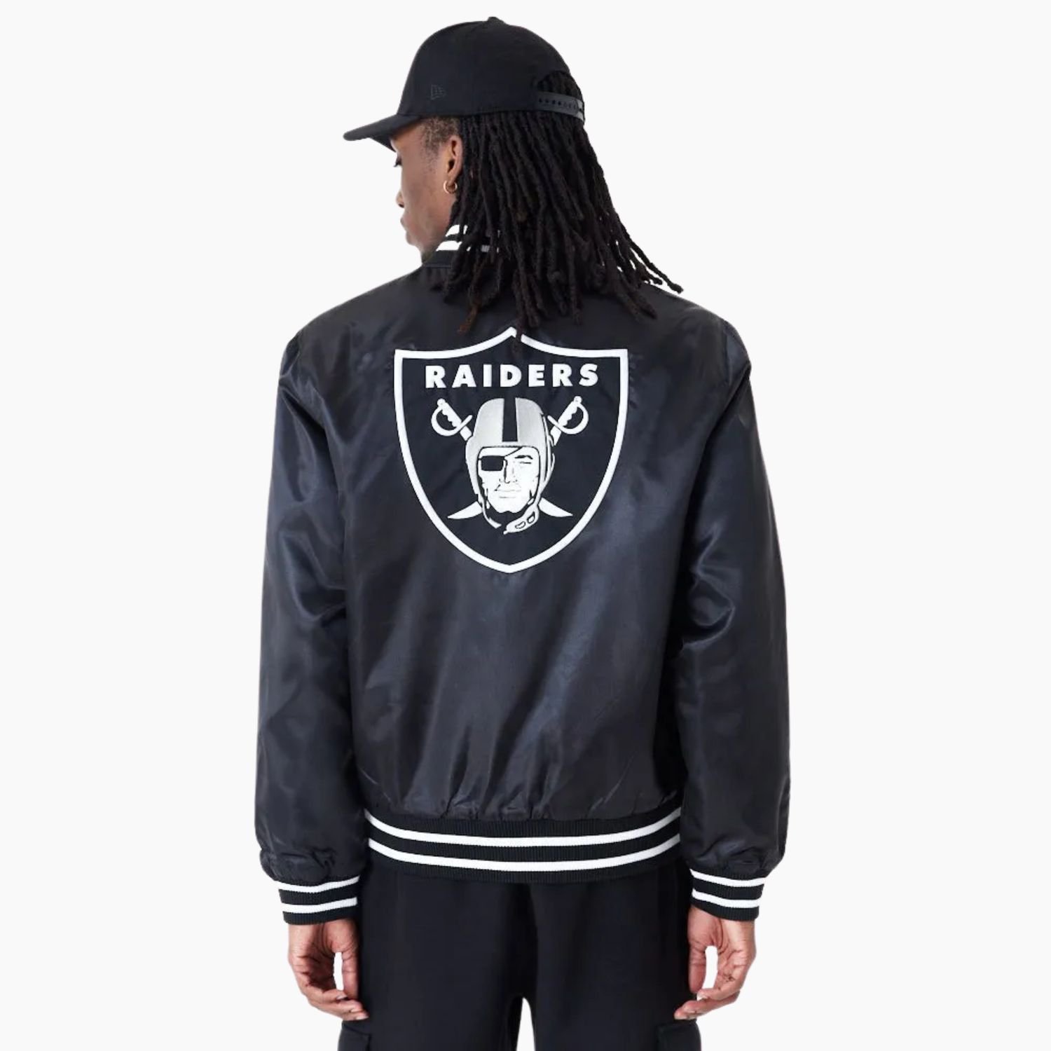 Crafted from high-quality satin material, it delivers a smooth, luxurious finish with long-lasting durability. The viscose interior lining ensures a comfortable fit, keeping you warm without compromising style. Its bold black color perfectly represents the Raiders’ iconic aesthetic, making it an essential addition to any fan’s wardrobe.