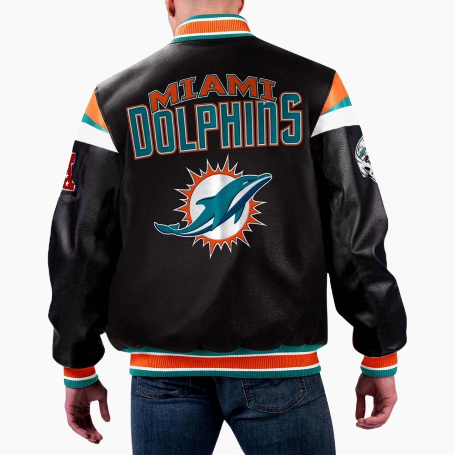 NFL Miami Dolphins Varsity Leather Jacket For Men and Women