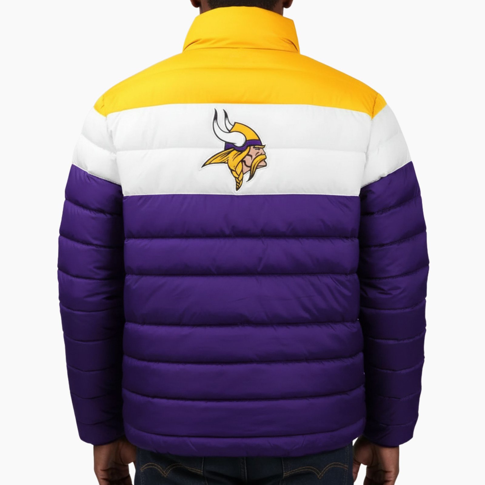 The NFL Minnesota Vikings Polyester Varsity Jacket by Movie Jackets Hub brings bold team spirit and modern comfort together in one standout piece. Inspired by the iconic Minnesota Vikings, this jacket features a dynamic color block blend of purple, gold, and white that instantly captures attention and showcases your loyalty.