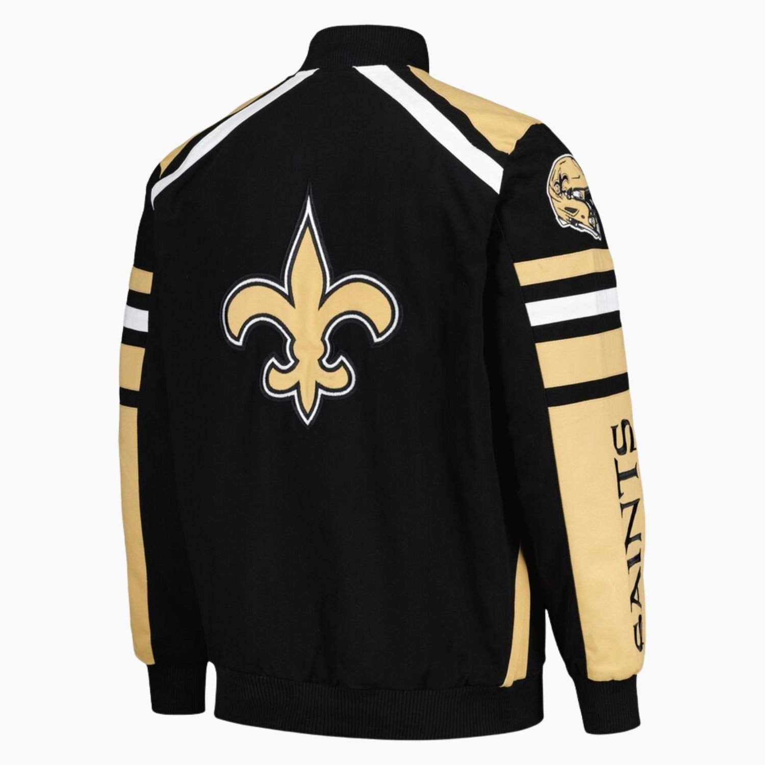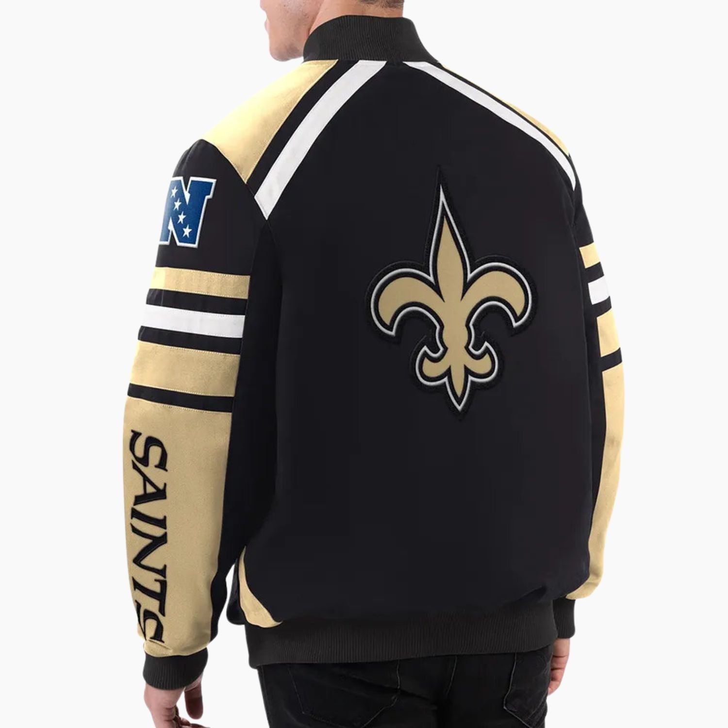 Crafted with fine quality stitching this New Orleans Saints varsity jacket delivers long lasting wear and dependable craftsmanship. Whether you are gifting it to a fan or expanding your high quality jacket jacket collection this piece brings iconic style and team pride together in a standout design.